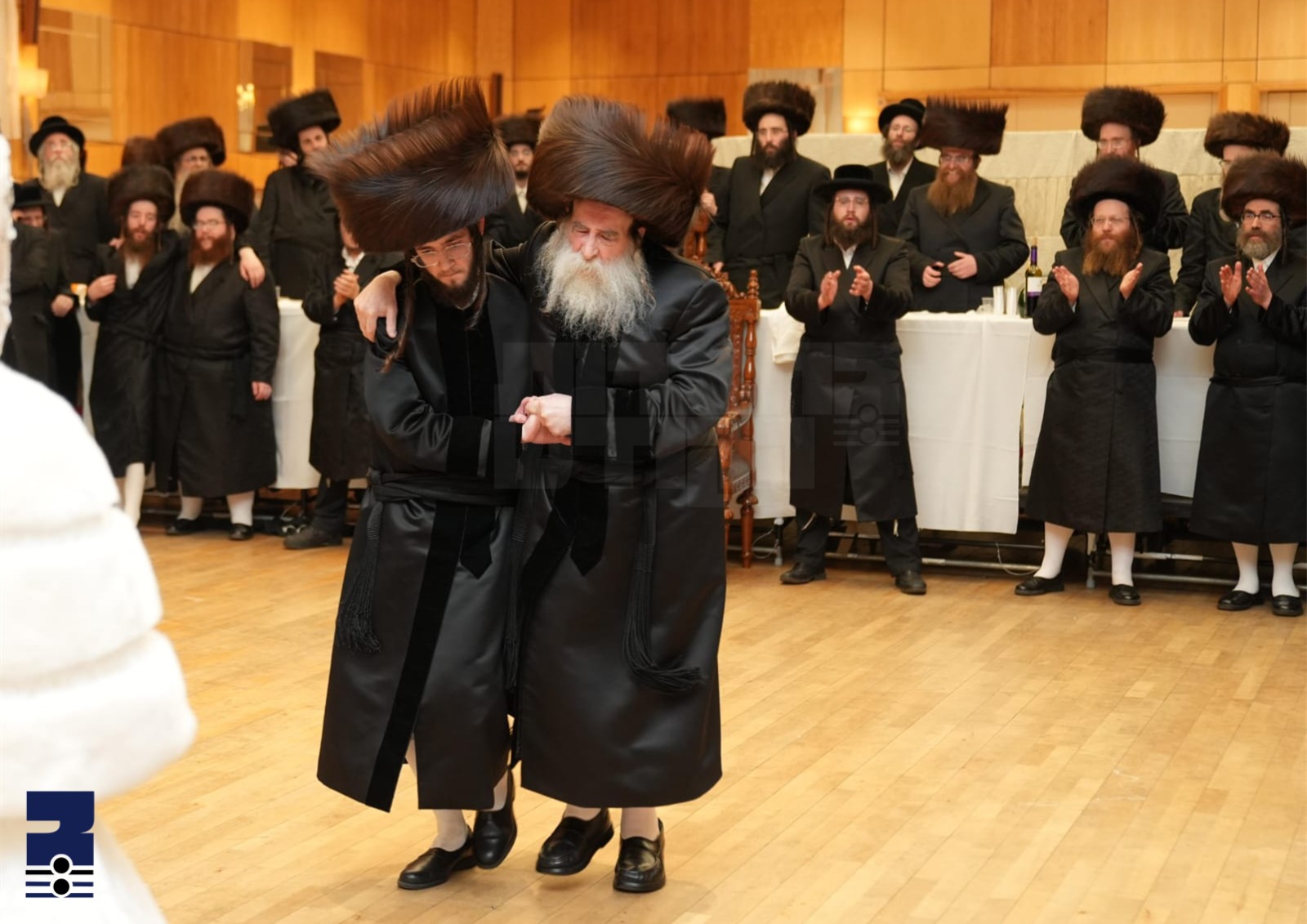 א קורצע צייט נאכן חופה זענען די זיידעס האדמור"ים ערשינען אין זאל און זיך געוואשן צום סעודת החתונה, נאכן בענטשן איז די ספינקא רבי אראפ אין צענטער פון זאל און מעודד געווען די ריקודין מיט גרויס התלהבות, דאן האט מען צוגעטראטן צום מצווה טאנץ ווען די משמש בקודש הר"ר אביגדור שמשון שפיטצער הי"ו האט אויפגערופן דעם רבי'ן שליט"א מיט פאסיגע דברי חרוזין און די רבי שליט"א האט אפגעראכטן די עבודת הריקודין לפני הכלה, דערנאך האט מען אויפגערופן די זיידע כ"ק אדמו"ר מפאלטישאן און די מחותנים.