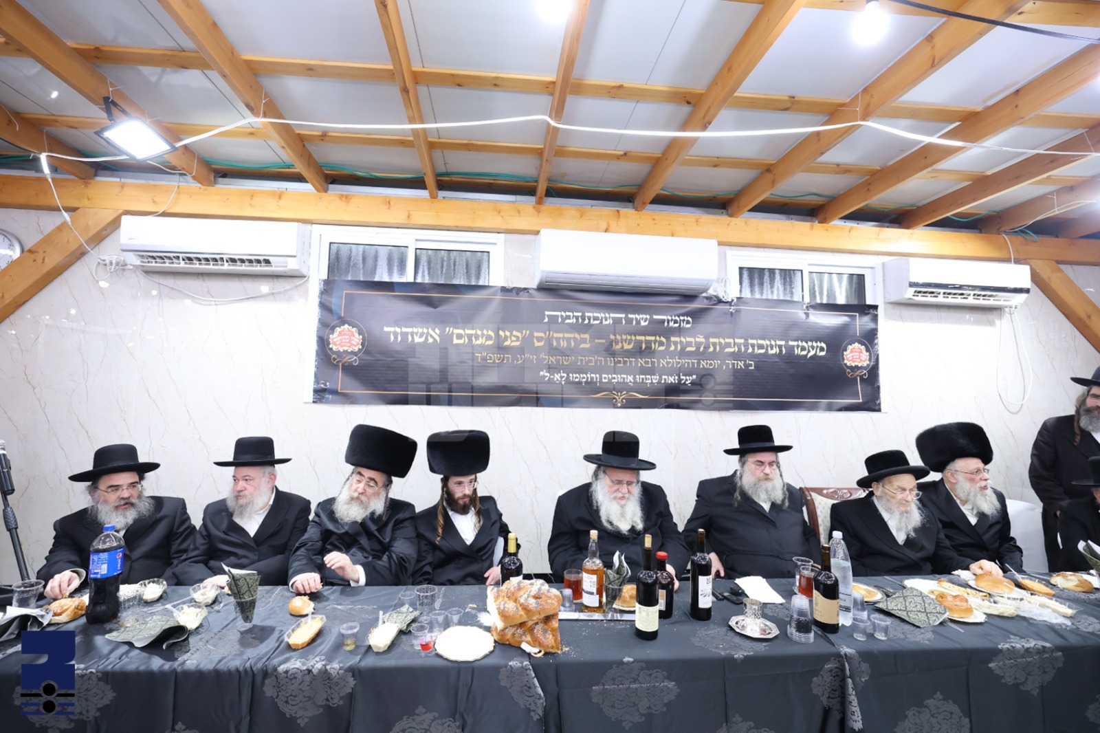 בראש המסובים האט באשיינט דער נשיא הקהילה הגאון הגדול רבי שאול אלתר שליט"א, ואתו עמו די רבני הקהילה, הגאון ר' דניאל אלתר ראש ישיבת פני מנחם, הגאון ר' חיים פסח הורוויץ דומ"ץ בעלזא, הגאון ר' יצחק יהודה ירוסלאווסקי, הגאון ר' יחיאל צוקער, און דער ראש הכולל הגאון ר' אליעזר כרמל. אזוי אויך האט זיך אנגעזעהן די השתתפות פון מערערע עסקנים און נציגי העיר, מנהלי המוסדות און רבני הקהילות פון שטאט אשדוד.