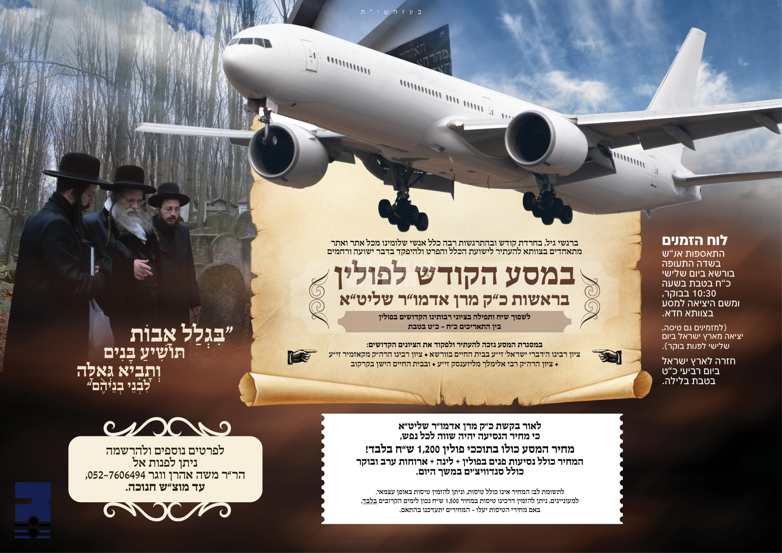 די נסיעה וועט זיך ארויסלאזן דעם קומענדיגן דינסטאג פר' בא, און מ'וועט במשך די צוויי-טאגיגע נסיעה אנקומען צו פוקד זיין ביי הרה"ק הדברי ישראל ממודזיץ אין ווארשא, ביים ציון הרה"ק מקאזמיר, ביים הייליגן רבי ר' אלימלך זי"ע אין ליזענסק, און ביים בית החיים הישן אין קראקא.