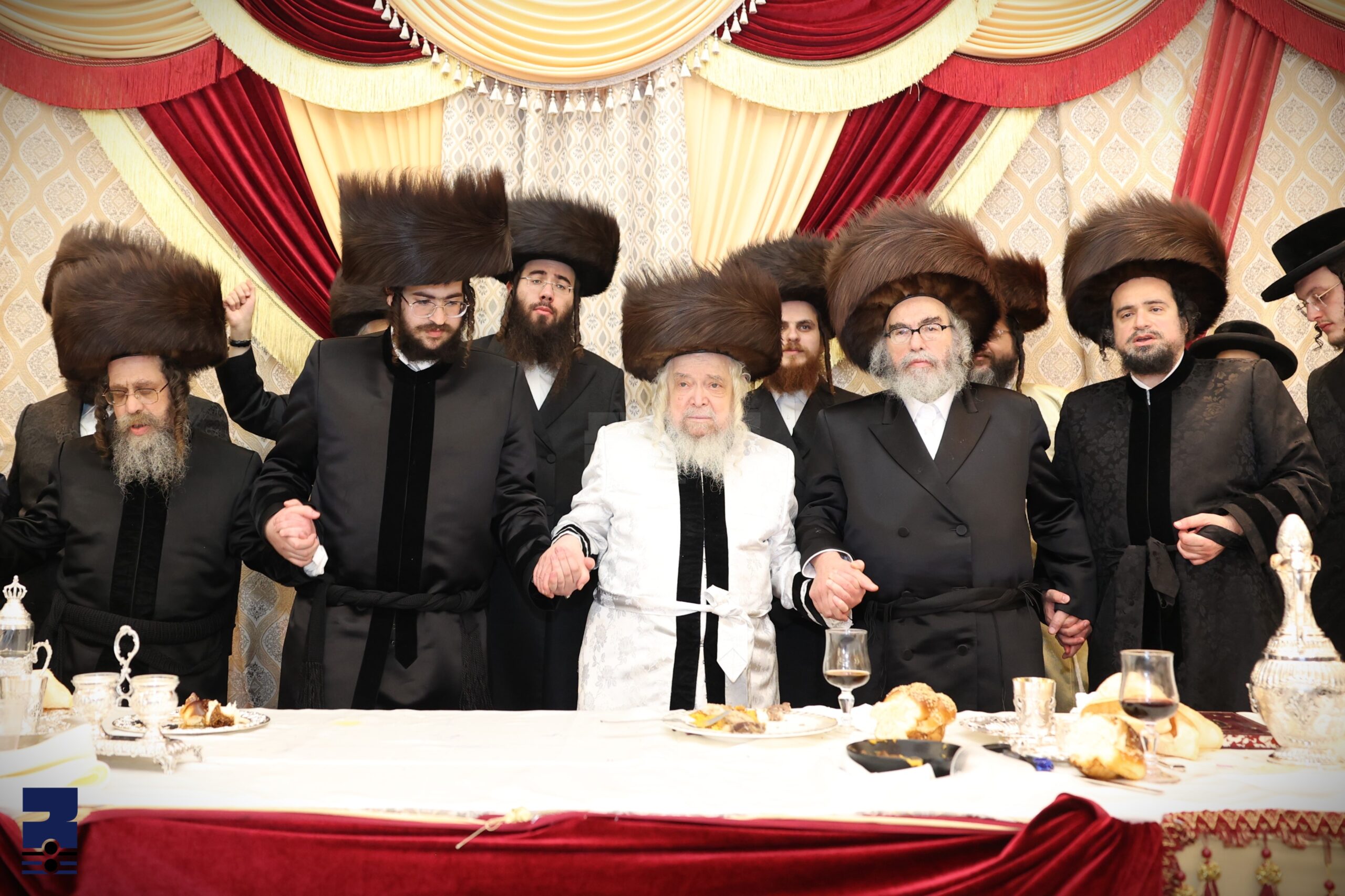 מיט ברכת המזון איז מכובד געווארן דער מחותן אבי החתן הרה"ג ר' משה לאנדא שליט"א אבד"ק יאמפאלא און מיט די שבע ברכות די פעטער האחים לבית משפחת לאנדא.