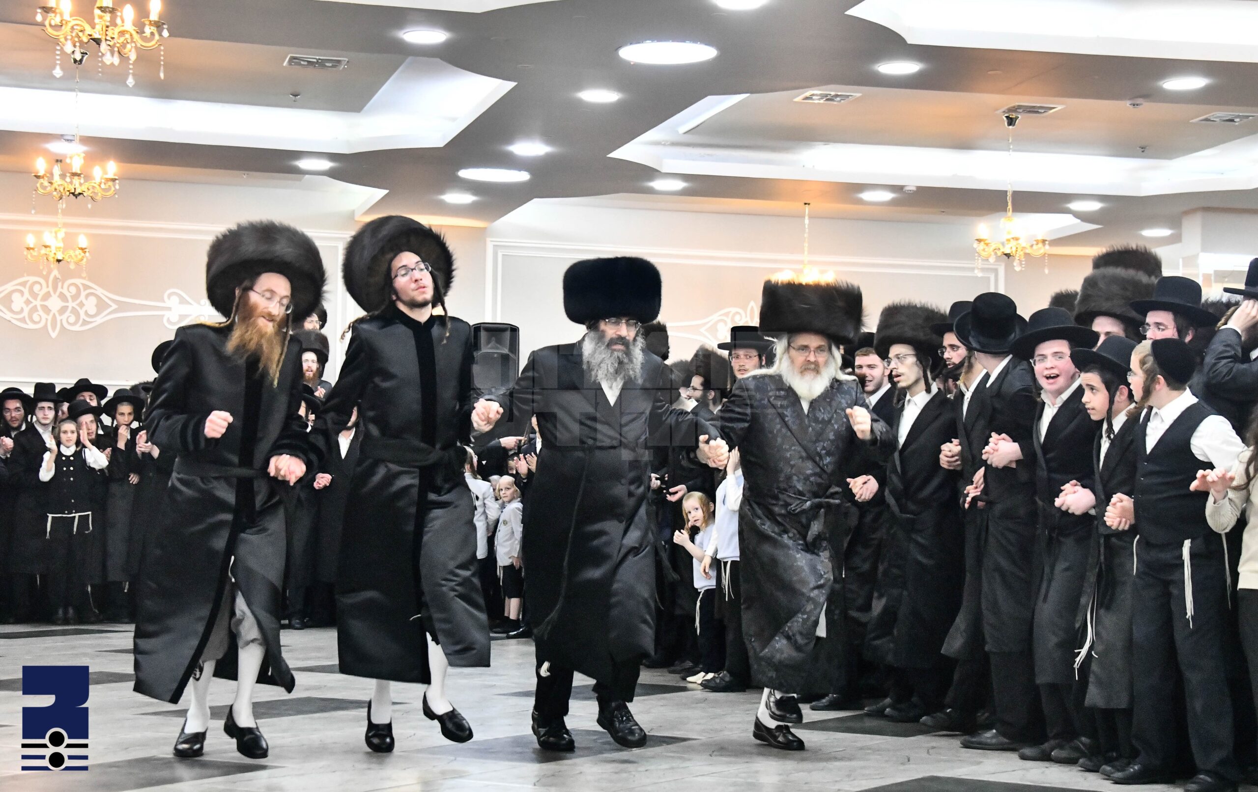א קורצע צייט נאכן מעמד החופה זענען די זיידעס אריינגעקומען אין זאל צום סעודת החתונה, בשעת די ריקודין איז רבי צבי מאיר אראפ אין צענטער פונעם זאל און געטאנצן לעבעדיג און דערהויבן דעם ציבור העכער און העכער, ווי הונדערטער תלמידים וחסידים פרייען זיך מיט בשמחתו הגדולה.