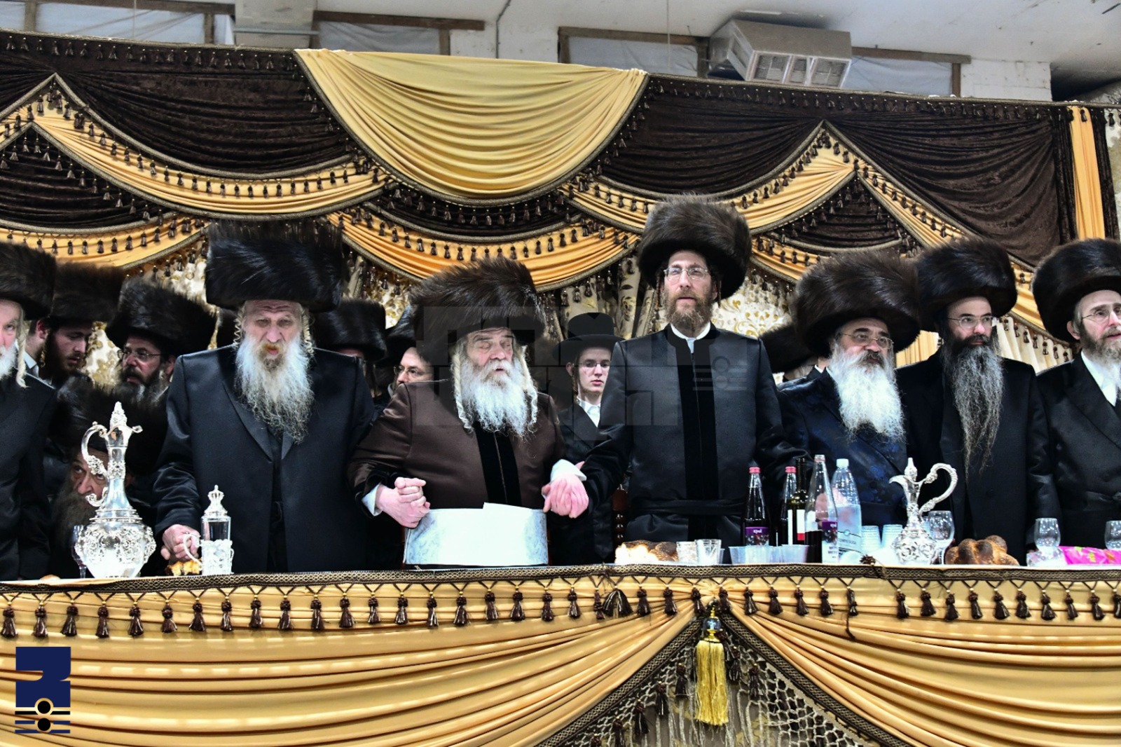 דורכאויס די סעודת החתונה האבן באשיינט בראש המסובים פילצאליגע אדמורי"ם ורבנים, צווישן זיי: די פעטער'ס מרן אדמו"ר מוויז'ניץ שליט"א, האדמורי"ם מטשערנאביל, טשארנאביל אשדוד, ביאלא בני ברק, גאב"ד מאקאווא און אב"ד טשערנאביל אלעד שליט"א. באזונדער האבן זיך אנגעזעהן די פעטער'ס האחים האדמורי"ם שליט"א לבית אלעסק וואס זענען געקומען ספעציעל געקומען צו פארן צו די שמחה, אין צוגאב צו נאך חשובע אדמור"ים ורבנים: האדמורי"ם ממאכנובקא בעלזא, נדבורנה ירושלים, שבט הלוי, סטריקוב, טאלנא אשדוד, זוטשקא אמסנא, לעלוב ירושלים, ביטשקוב, זידיטשוב בני ברק, ראחוב, סטאניסלאוו ביתר, קאסאן י-ם, הגה"צ גאב"ד מאקאווא, הגה"צ ר' אהרן מרדכי רוקח שליט"א מבעלזא, הגה"צ אב"ד קרית וויז'ניץ שליט"א, הגה"צ אב"ד וויזניץ אלעד שליט"א, הגה"צ אב"ד וויזניץ אשדוד שליט"א, הגה"צ אב"ד ביליץ שליט"א, הגה"צ ר' יהושע מנחם שטערן אב"ד ראחמיסטריווקא שליט"א, הגה"צ ר' נחמן בידערמאן שליט"א מלעלוב, און נאך.