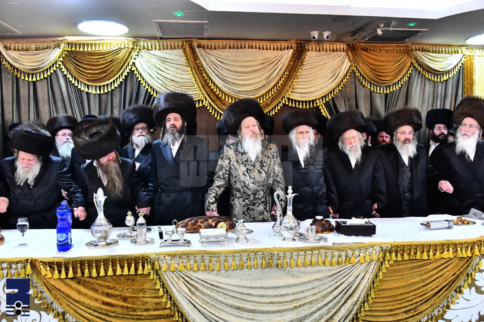 א קורצע צייט דערויף זענען די אדמור"ים שליט"א ערשינען צום שמחת החתונה אין זיך געווואשן צום סעודת מצוה, די רבי'ס האבן מיטגעהאלטן די ריקודין ווען א קאפעליע פון אלע דריי הויפן אינאיינעם האבן מהנה געווען בשירה וזמרה. כמנהגו איז די זיידע האד' מדזיקוב וויז'ניץ אראפ טאנצן מיט די חסידים אין צענטער פון זאל. אויך די סטריקובער רבי איז אראפ טאנצן מיט די בני משפחת המלוכה.