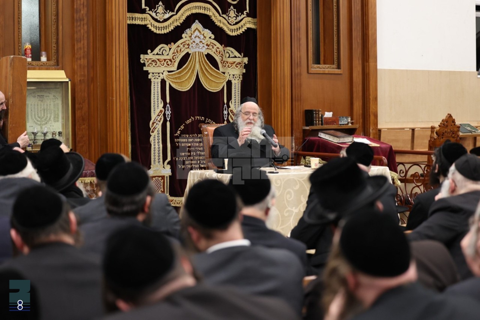 שפעטער נאך צען אזייגער אויפדערנאכט איז דער ראש ישיבה אנגעקומען אין ביהמ"ד הגדול וויזניץ לאנדאן איבערצוגעבן דעם שיעור כללי פאר די תושבי העיר, די בית המדרש איז געווען איבערגעפולט מקצה אל קצה מיט טויזענטער אידן חסידים ואנשי מעשה לומדים ומתמידים, דער ראש ישיבה האט מאריך געווען בדרוש ופלפול איבער די מחלוקת פון הגר"ח און דער הייליגער חזון איש בדברי הרמב"ם, ווען די גאנצע היכל בית המדרש ווערט פארוואנדלט אין איין שטיק תורה בקדושה וטהרה בפלפול ואגדה.