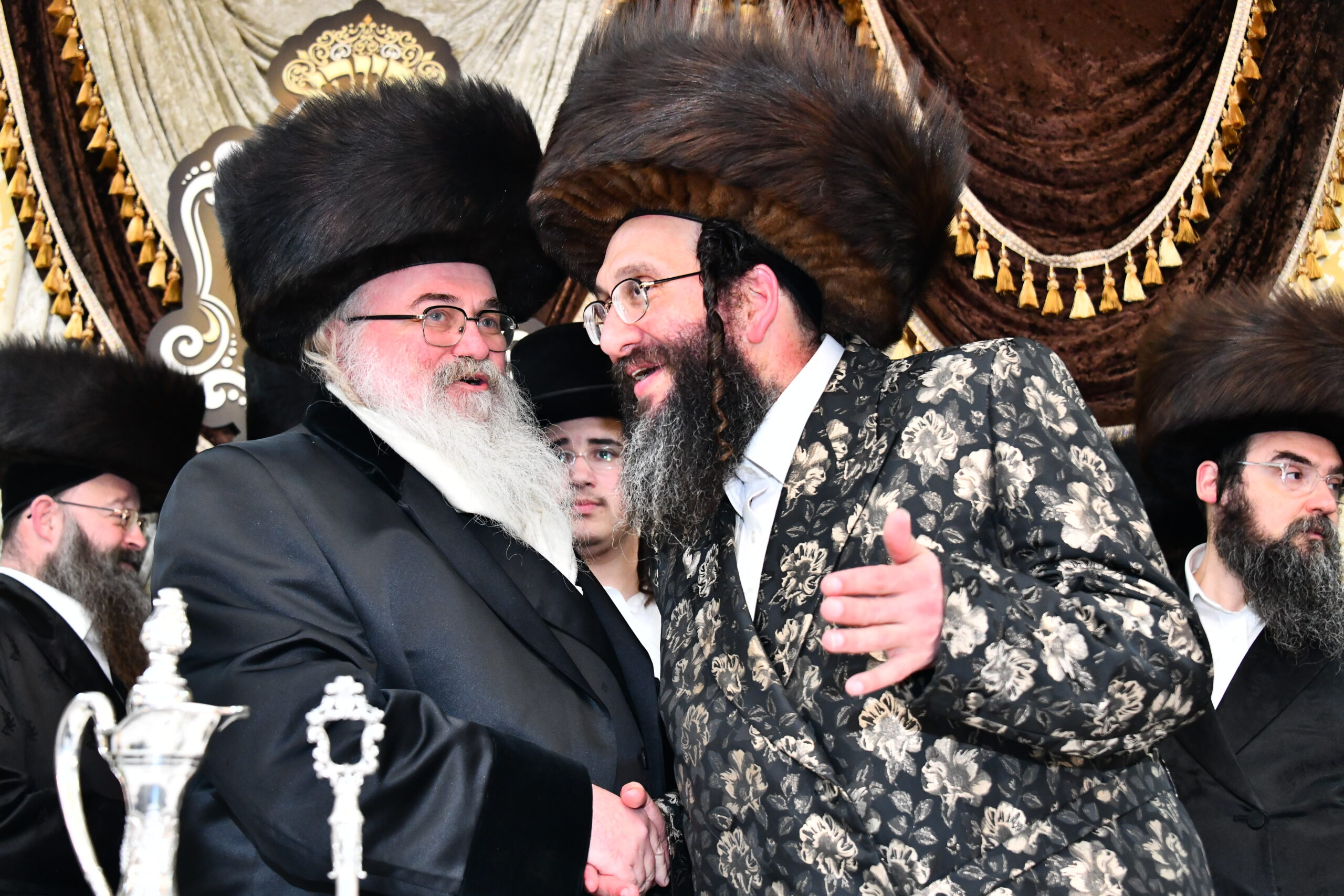 די מעמד איז פארגעקומען אין די היכלי מלכות זאלן אין בני ברק וואו עס האבן זיך באטייליגט הונדערטער אידן חסידים ואנשי מעשה. צווישן אנדערע האט זיך אנגעזעהן דעם רבינ'ס פעטער כ"ק אדמו"ר מספינקא פון בני ברק, דעם רבינ'ס ברודער כ"ק אדמו"ר מספינקא גני גד, האדמורי"ם ממאחנובקא בעלזא, סטריקוב, קוזמיר, זוטשקא, זוטשקא אמסנא, חוג חתם סופר, ביאלא רמת אהרן, ראדזין, לייפניק, בערגסאז בית שמש, הגה"צ ר' מנחם ארנסטר ראש ישיבת ויזניץ בשליחות גיסו מרן אדמו"ר מויזניץ, הגה"צ ר' חיים יוסל בידערמאן אב"ד לעלוב ב"ב, הגה"צ ר' יצחק ישעי' ווייס גאב"ד נוה אחיעזר, און נאך חשובע רבנים ומורי הוראה.