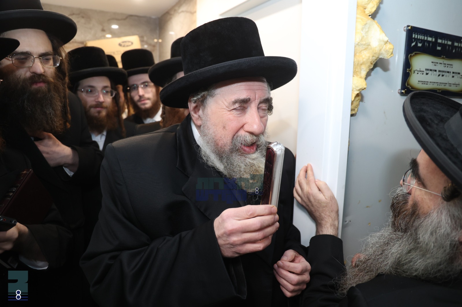 פארלאפענעם מאנטאג אווענט איז כ"ק האדמו"ר מראחמיסטריווקא שליט"א אנגעקומען אויף א מעמד קביעת מזוזות בהיכל המתיבתא 'ברכת שלמה' אין ירושלים וואס שטייט בנשיאות הרה"צ רבי יעקב יוסף גאלדמאן שליט"א ראש הישיבה, א פלאמעניק פון רבי'ן.