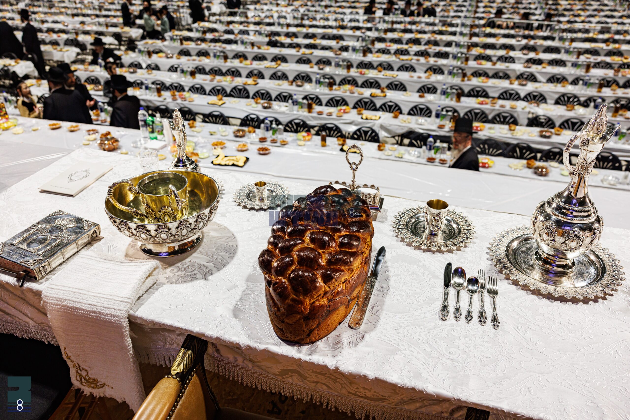 די פאראייניגטע הערצער כלב אחד פון טויזענטער תלמידי וחסידי סאטמאר זקנים עם נערים קאכן און פלאטערען אונטער דעם רישומא קדישא נאכן מיטלעבן דעם ליל שימורים לבני ישראל ביים צענטראלן סעודת הודאה ושלחן הטהור נעכטן ליל כ״א כסלו, במקהלות רבבות עמך בית ישראל אינעם איבערגעפולטען ניו יארק סטעיט ארמארי געביידע אין קראונהייטס, בראשות הרבנים הגאוה"צ רבני ודייני וחברי הביד"ץ דקהל יטב לב ומנהיגי עדת ישורון ומלכם בראשם כבוד קדושת אדמו"ר מסאטמאר שליט"א.