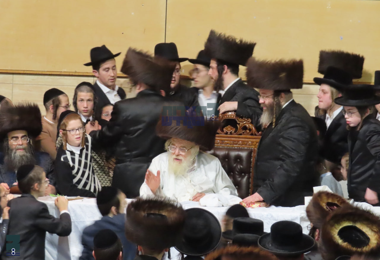 אינצווישן איז דער זאל געווארן איבערגעפולט מיט דעם ריזיגן ציבור וואס האָט זיך פאַרזאַמעלט מיטצוהאלטן דעם עריכת שולחן הטהור פון רבי'ן שליט"א ובראש השולחן האבן זיך אָנגעזען די פילצאליגע רבני העיר, רבנים אדמורי"ם ודיינים שליט"א. דער רבי שליט"א איז ערשינען צום טיש, און מעריך געווען שולחנו הטהור אנגעהויבן פון שלום עליכם און קידוש געמאכט מיט גרויס התלהבות.