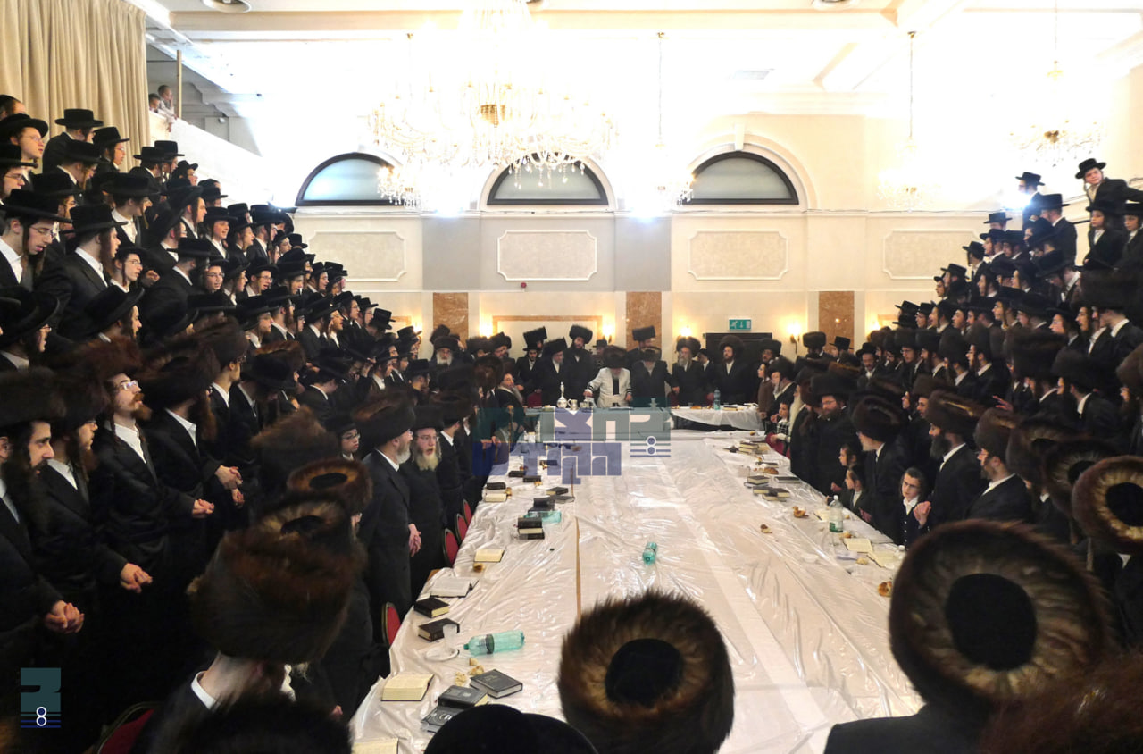 הויפט בלאט באריכט הונדערטער תושבי לאנדאן ווארימען זיך שבת קודש בצל כ"ק אדמו"ר מקרעטשניף סיגעט שליט"א
