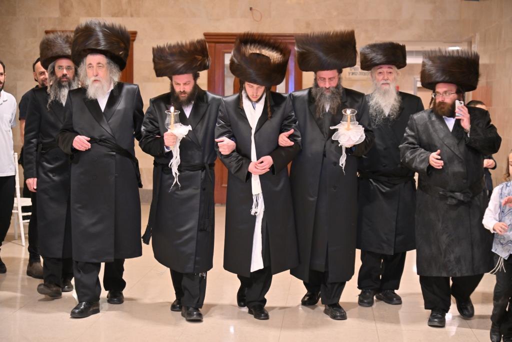 אין לויף פון די חתונה האבן באשיינט די שמחת בית צדיקים פילע אדמורי"ם ורבנים וועלכע זענען געקומען וואונטשן ברכת מזל טוב פאר די געהויבענע מחותנים און זיידעס און פאר'ן מחותן דער רבי שליט"א, צווישן זיי האדמורי"ם מצאנז, סאדיגורא, פיטסבורג, זוועהיל, סאדיגורא ירושלים, שומרי אמונים, ברעזאן, האדמורי"ם לבית ביאלא, כ"ק גאב"ד מאקאווא, אין נאך.
