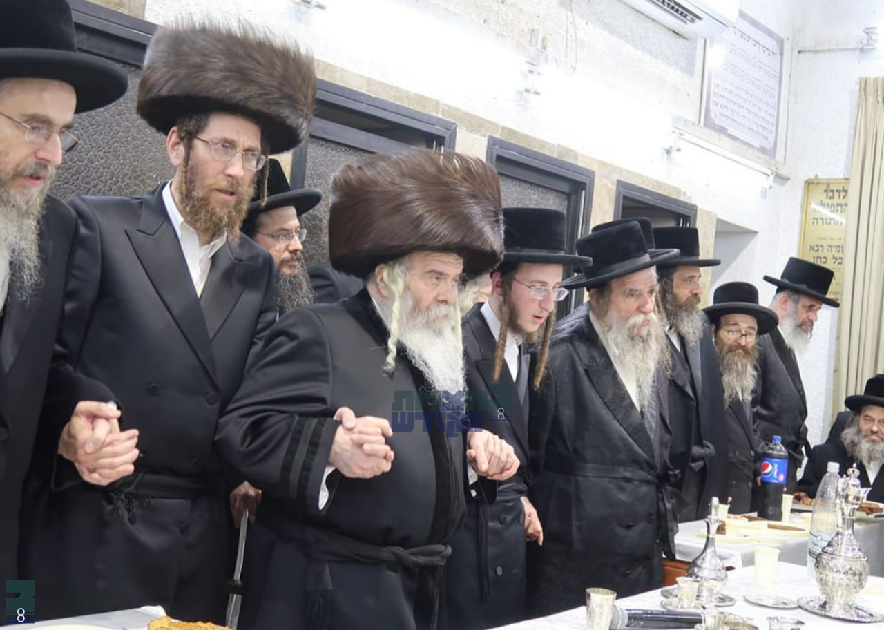 שמחת התנאים פון לרגל די שידוך שליסן פון החחתן זון פון הגה"צ רבי דוד צבי שנייבאלג דומ"ץ וויזניץ ירושלים איידעם פון כ"ק אדמו"ר מדעעש ירושלים זצ"ל מיט די כלה אייניקל ביי כ"ק אדמו"ר מקרעטשניף ירושלים שליט"א טאכטער פון חתנו כ"ק אדמו"ר מאלעסק שליט"א פון ארה"ק, די שמחה איז פארגעקומען אין קרעטשניפער ביהמ"ד אין בני ברק וואו דער אבי הכלה האד' מאלעסק שטייט בראש הקהילה.