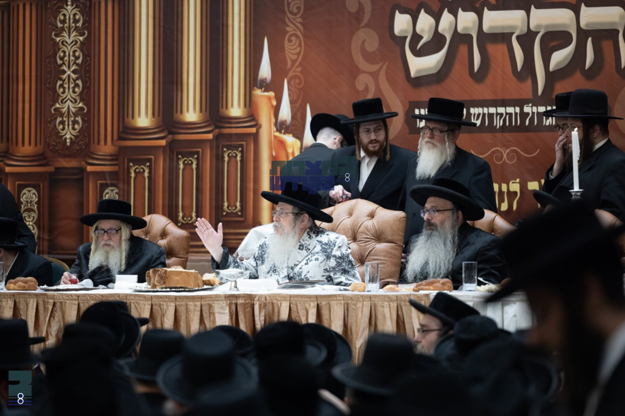 זינטיג נאכט בליל ההילולא קדישא האט די רבי שליט"א יורד געווען לפני התיבה צו תפילת מעריב אין ביהמ"ד הגדול וואס איז געווען איבערגעפילט מיט א גרויסע ציבור חסידים תושבי הקריה און הונדערטער געסט וואס האבן זיך געפינען אינעם שטעטל לרגל האי יומא רבה. נאך מעריב האט זיך די ריזיגער ציבור פארזאמלט אין ביהמ"ד הגדול, צו די צענטראלע סעודת הילולא וואס איז אפאגעראכטן געווארן במקום הקודש, בבית מדרשו של רבי, דער ביהמ"ד איז הערליך אויסגעשטעלט געווארן מיט א ברייטן אויבן אן אויף דרום זייט, ווי עס האבן באשיינט פולע גדולי ורבני ודייני קהילות טאהש, וגדולי ורבני עיר מאנטריאל, ונכדי בעל ההילולא. אינעם ריזן היכל איז געווען צוגעגרייט הונדערטער זיץ פלעצער, און הויעך שטאקיגע פארנטשעס.