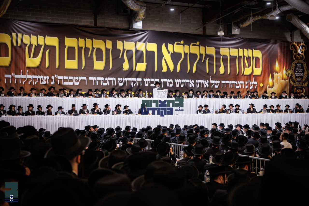 מוצאי שבת האט די רבי באשיינט די סעודת מלוה מלכה אינעם נייעם ביהמ"ד דקהל יטב לב – בית כהנא שכונת חברון אין קרית יואל אינאיינעם מיט א מסיבה לטובת די השלמת הבנין בית המדרש החדש והמפואר, וואו די רבי האט משמיע געווען קורצע דברות קודש און אויסגעפירט מיט ברכות לרוב פאר אלא משתתפים.