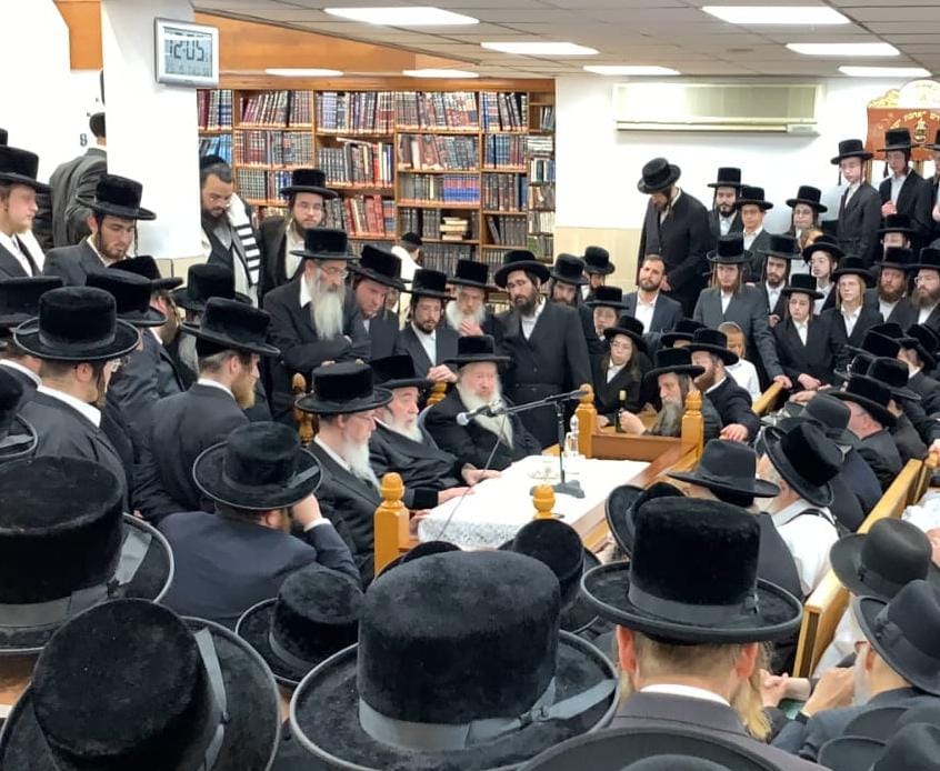 דערנאך האט זיך די רבי אוועק געזעצט צום שולחן לחיים לכבוד ראש חודש, דער גבאי הביהמ"ד הרב שמואל בערגער האט אויפגעטראטן בשם כל קהלא קדישא הדין אין זיך באדאנקט פארן רבי'ן פארן זיך מטריח זיין אין ארויסקומען מחזק זיין דעם היימישן עולם, דאן האט די רבי שליט"א משמיע געוועהן דברות קודש ווי די רבי האט בתוך דבריו ארומגערעט בשבח פון די קהילה אין לאנדאן אין מסיים געוועהן בברכת קדשו לרוב.