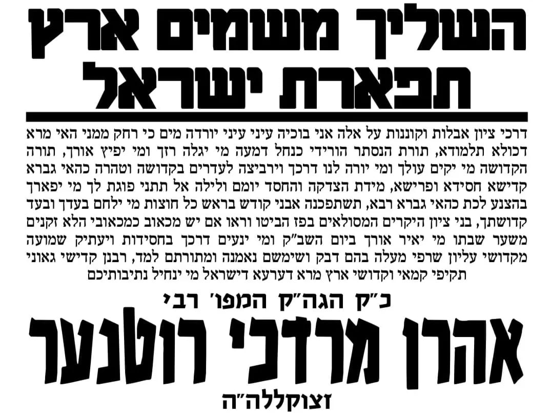 בילדער וכל בית ישראל יבכו את השריפה • מודעות אבל להסתלקותו פון הגה"צ רבי אהנרן מרדכי רוטנער זצוק"ל געשריבן דורך admin123 יולי 18, 2023 יולי 18, 2023 ינואר 11, 2026 בוקמארק 3 דינסטאג פ' דברים – כ"ט תמוז תשפ"ג | קול בחצרות הגה"צ ר' אהרן מרדכי רוטנערמאחנובקא-בעלזא בוקמארק האד' מבעלזא אפגעראכטן מסיבת שבע ברכות פארן הויז בחור החתן... ינואר 13, 2026 בוקמארק גייסטרייכע מעמד "להחיותינו" אפגעראכטן אין ק"ק מאחנובקא בעלזא אין ירושלים... ינואר 13, 2026 בוקמארק אמא של מלכות: האד' מבעלזא מתפלל געווען על קברה פון... ינואר 12, 2026 בוקמארק היסטארישע טעלעפאן געשפרעך אפגעהאלטן צווישן האד' מבעלזא און ראש הישיבה... ינואר 7, 2026 בוקמארק מֵאֵת ה' הָיְתָה זֹּאת • יום טוב חנוכה בחצר הקודש... דצמבר 29, 2025 בוקמארק גרויסארטיגן שבת וארא הבעל"ט מיט הרה"צ רבי אהרן מרדכי רוקח... דצמבר 23, 2025 ווידיאו • האד' מבעלזא ביים צינדן חנוכה ליכט ערב שבת... דצמבר 21, 2025 בוקמארק כִּי אַתָּה תָּאִיר נֵרִי • יום טוב חנוכה בחצר הקודש... דצמבר 17, 2025 בוקמארק פרייליכע שמחת החתונה אין הויפן פון מאחנובקא בעלזא – יערוסלאב... דצמבר 17, 2025 בוקמארק פרייליכע שמחת החתונה אין הויפן פון מאחנובקא בעלזא – יערוסלאב... דצמבר 17, 2025 שרייבט א קאמענט ביטול