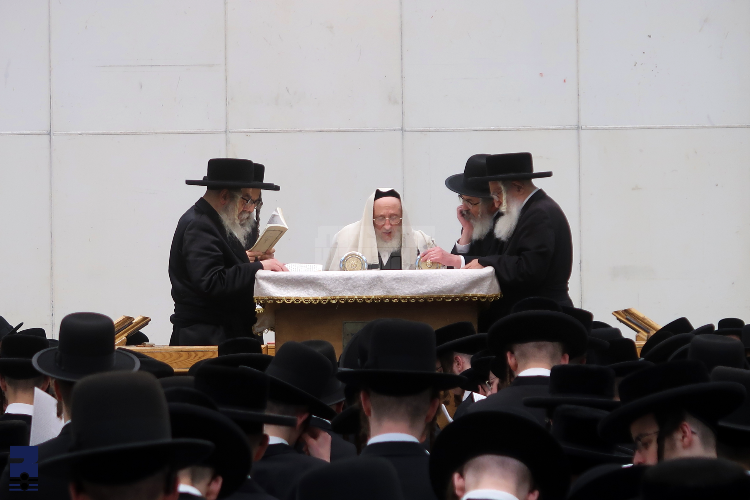 במשך אלע תפילות איז דער היכל הביהמ"ד הגדול מיט אלע גאלעריען און היכלים געווען איבערגעפילט מקצה אל קצה נישט קענענדיג אקאמאדירן דעם ריזן ציבור לאלפים וואס זענען געקומען זיך מסתופף זיין בצל הקודש אינעם דעם הייליגן טאג. גשים מול פּני הקודש באימה, לעת ערב איז דער רבי שליט"א ערשינען ביים ארון הקודש, און אָנגעהויבן משמיע צו זיין די כל נדרי דרשה מיט אן אש להבה ובבכי רב ועצום. נאך די דרשה לעת כניסת היום האט די רבי שליט"א דערמאנט די מנהג אבותיו הק' צו זאגן וידוי לעת כניסת היום און אנגעהויבן בקול בוכים 'אנא תבא לפניך תפלתינו' און פארגעזאגט אויפן ארון קודש אינאיינעם מיטן ציבור מיט ניגון 'אשמנו בגדנו' ווען צווישן יעדע ווארט ברעכט דער רבי אויס אין א שרעקליכן געוויין וואס האט מיטגעשלעפט דעם גאנצן ציבור בבכיות נוראות.