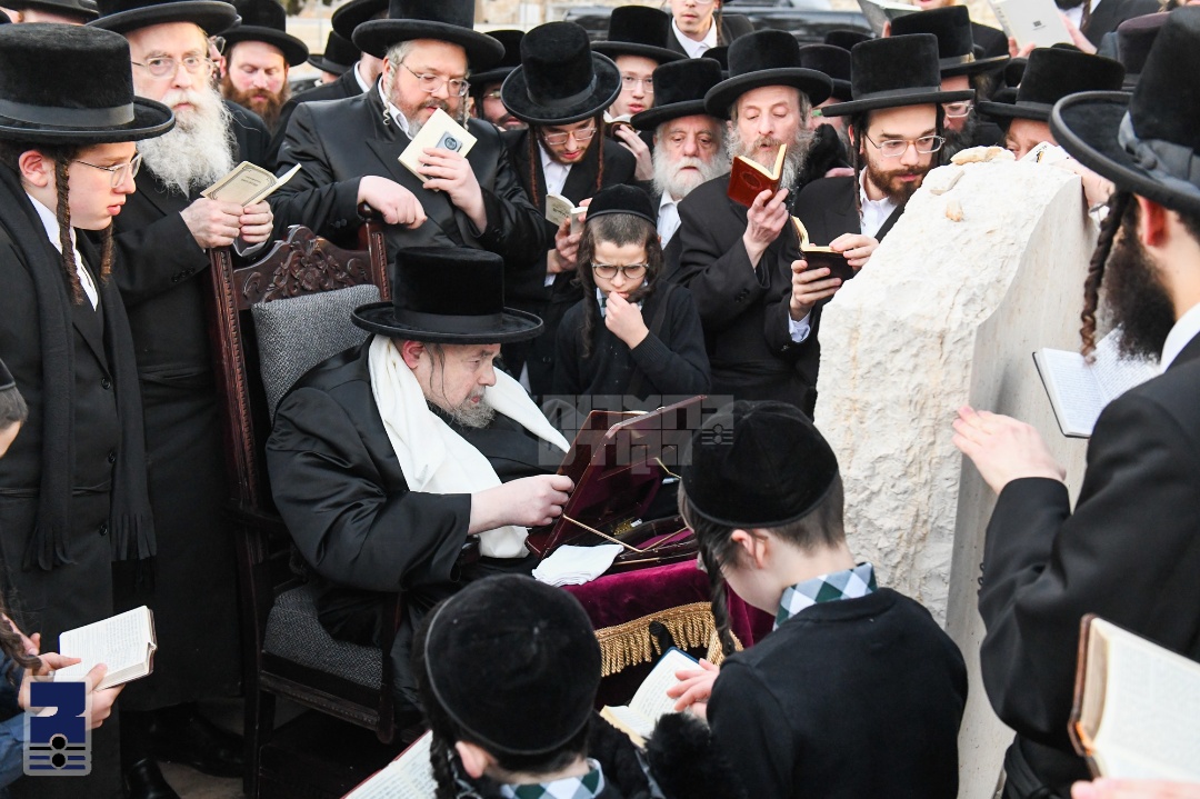 מיטוואך צופרי איז דער רב שליט"א אריינגעקומען אין בית תפילה און יורד געווען לפני התיבה צו שחרית און געזאגט די קדישים. נאך מנחה פארן שקיעה איז דער רב שליט"א ארויסגעפארן אין באגלייטונג פון א עדה חסידים צום הר המנוחות און מתפלל געווען על קברה ביים חלקת מחזיקי הדת. אנקומענדיג צום ציון האט דער רב שליט"א אנגעצינדן דעם נר תמיד און געזאגט ספר רביעי שבתהילים און די יהי רצון. דערנאך האט הרב החסיד ר' יעקב שיף שליט"א געזאגט קל מלא רחמים פארן רב שליט"א און פאר בנו יחידו הרה"צ רבי אהרן מרדכי שליט"א.