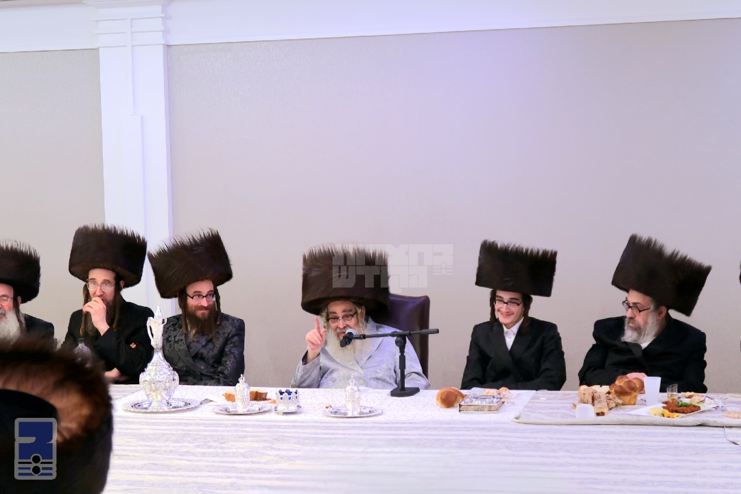 דער רבי האט זיך געוואשן צום סעודת שבע ברכות בראש שמחתו, און במשך די סעודה האט זיך משתתף געווען הרה"צ רבי אהרן מענדל טווערסקי שליט"א בנו הגדול פון כ"ק אדמו"ר מסקווירא שליט"א, מיט וועם די רבי האט פארצויגן א שיינעם שמועס.