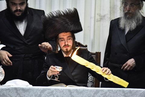 לכבוד שבת האט דער רבי שליט"א באנייט דעם נייעם שטריימל מיט א 'שפיץ' און זיך אויך אנגעטון א 'שניפצל' כנהוג ביי אדמור"י בית רוזין. צו 'בואי בשלום' איז דער רבי שליט"א ארויסגעקומען פון דאווען-שטוב און נאכ'ן דאווענען זענען טויזענטע יודן אריבער זיך וואונטשן 'גוט שבת' ביים רבי'ן. דער רבי שליט"א איז אריינגעקומען צום טיש עלף אזייגער און די עריכת השולחן האט זיך פארצויגן דריי שעות ברציפות פון התרוממות ועונג רוחני און מ'האט געענדיגט דעם טיש צוויי אזייגער. דורכאויס דעם טיש האט דער רבי שליט"א אויפגעטראטן עטליכע מאל בדברות קודש און געהייסן זינגען עטליכע סקולענ'ע ניגונים צווישן זיי 'טעמו וראו כי טוב ה'. די זקני חסידים זענען געשטאנען פארוואונדערט, און זיך צוגעקוקט אויף יעדן תנועה וואס דער רבי שליט"א האט געוואויגן און זענען באגייסטערט געווארן פון די 'כח ההנהגה' וועכלע דער רבי שליט"א פארמאגט, ווען ער האט אנגעפירט די עריכת השולחנות כזקן ורגיל, ווי א רבי וועלכע פירט שוין טישן צענדליגע יארן. נישט אומזיסט האט זיך דער רבי זצ"ל אויסגעדרוקט אויפן בנו דער רבי שליט"א: "ער איז געבוירן א רבי!"…. – זאגט איינע פון די חסידים.