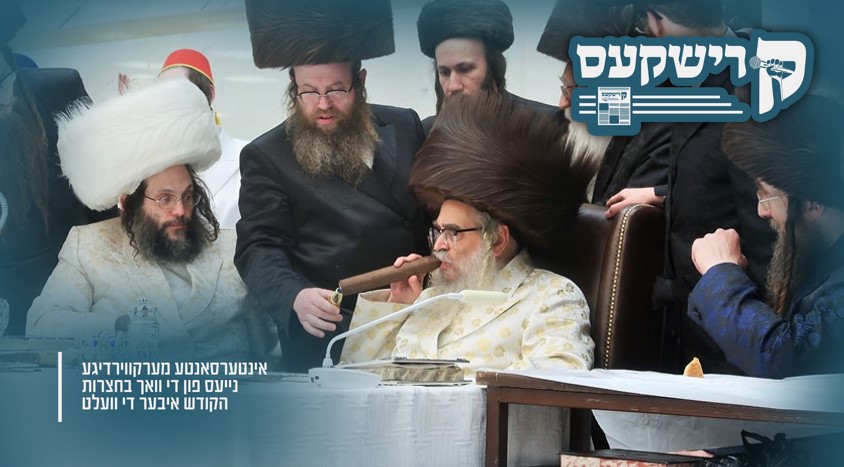 ביים משתה היין בבית הגה"צ רבי משה קאהן אבד"ק תולדות אהרן טבריה, מערקט קרישקעס דער בארימטער דף היומי מגיד שיעור הרה"ג ר' אברהם ישעי' קובלסקי שליט"א און דער שריפטשטעלער ר' יוסף מאיר האס הי"ו.