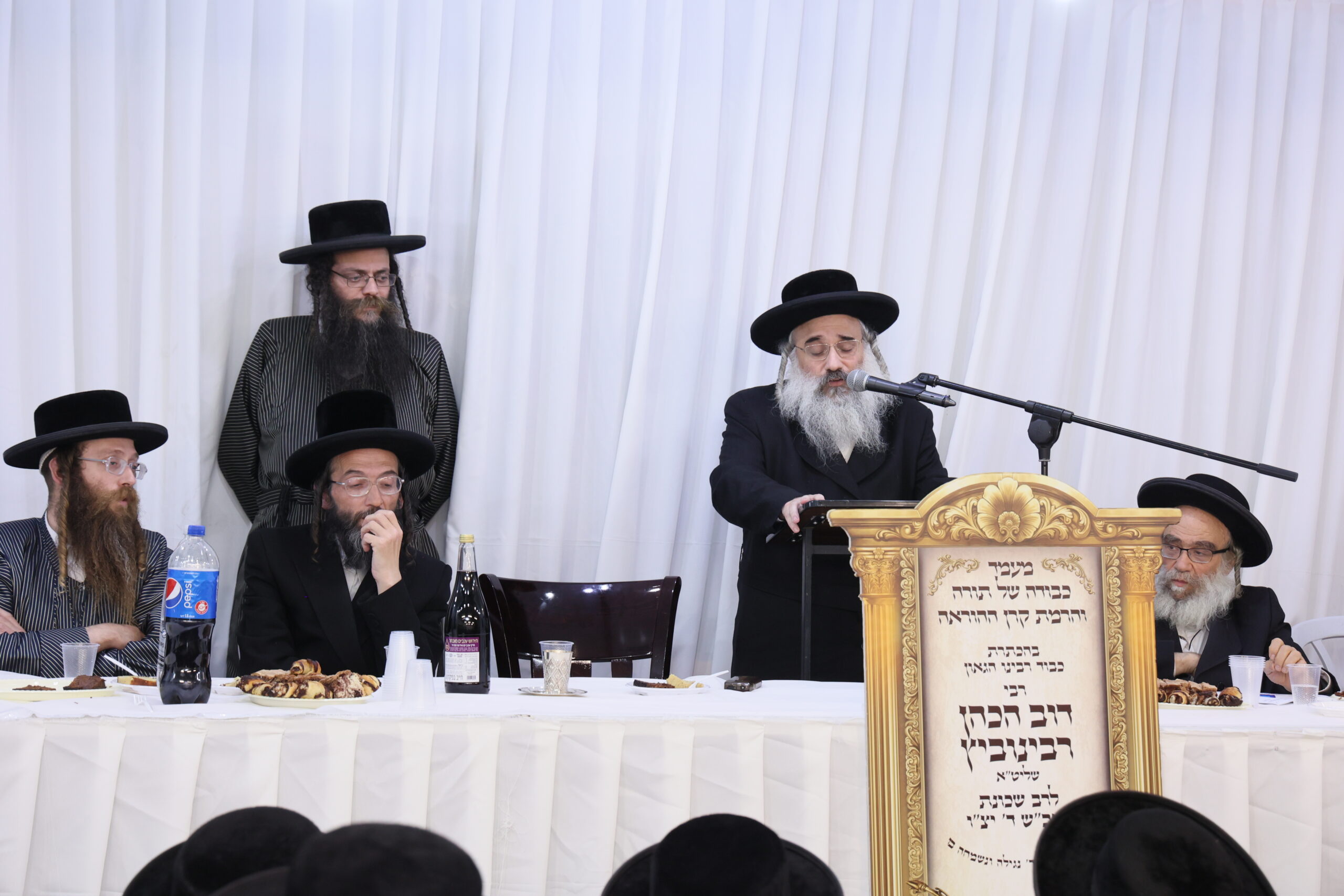 דאן האט גענימען דאס ווארט הגאון הגדול ר' חיים יוסף בלויא שליט"א מו"צ עדה החרדית ורב שכונות פאג"י זוהן פון הגאון ר' יעקב בלויא זצ"ל חבר בד"ץ העדה החרדית וואס דער נייע רב איז זיינס אן אייניקל און האט גענאסן ביי אים א קירבה יתירה, דערנאך האבן אויפגעטראטן דער פאטער פונעם מרא דאתרא הגאון הצדיק ר' גמליאל רבינוביץ שליט"א, הגאון ר' חיים לייב רובינשטין שליט"א רב שכונת רמה ד' 2 און צום שלוס האט מען געהערט די אינהאלטסרייכע דיבורים דברי פי חכם חן פונעם נייעם מרא דאתרא הגאון הגדול רבי דוב רבינוביץ שליט"א.