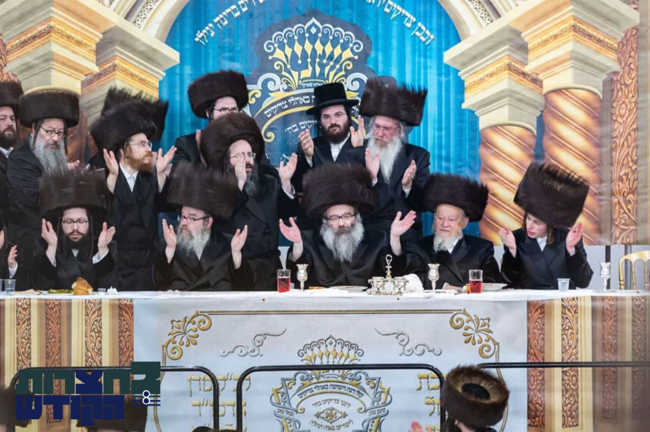 די סעודת החתונה איז סערווירט געווארן פארן גאנצן ציבור אינעם ריזן זאל פון תלמוד תורה בעלזא, צום באשטימטן צייט איז דער געהויבענער זיידע כ"ק אדמו"ר מוויזניץ שליט"א ערשינען צום סעודת החתונה און מעודד געווען די ריקודין א לענגערע צייט, שעות פון התרוממות הנפש האט יעדן ארומגענומען ביי די סעודה און ריקודין, ווען די הונדערטער חסידים אין זאל און אויף די הויכשטאקיגע פארענטשעס הייבן זיך העכער און העכער טפחיים מעל הקרקע, א קאפעליע פון די אברכי הקהילה און תלמידי הישיבה האבן מהנה געווען בשירה וזמרה הייבענדיג דעם ציבור העכער און העכער.
