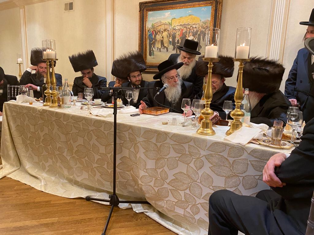 דערנאך איז די רבי שליט"א ערשינען אין אפגעראכטן א שולחן לחיים אין מאציל געוועהן מברכת קדשו פארן זיידן הנגיד ר' הערשל רייכמאן אין פארן מחותו הנגיד החסיד ר' טובי' ראזענבערג הי"ו ראש הקהל צאנז קלויזענבורג אין קרית צאנז לעיקוואד אין דערנאך משמיע געוועהן לענגערע דברות קודש ווי די רבי האט שטארק משבח געוועהן דער בעל האכסניא ר' הערשל וואס אויסער זיינע מעשי צדקה וחסד אין ער אליין א לומד תורה אין א מוקיר תורה אין האט זוכה געוועהן אז זיינע קינדער זענעו טאקע אויסגעוואקסן חושבע אינגעלייט בני תורה אין מסיים געוועהן בברכת קדשו. דערנאך האט זיך די רבי אויפגעשטעלט אויף א רקידה מיט די חתן אין מחותנים אין א באזונדערע ריקוד מיטן זיידן ר' הערשל.