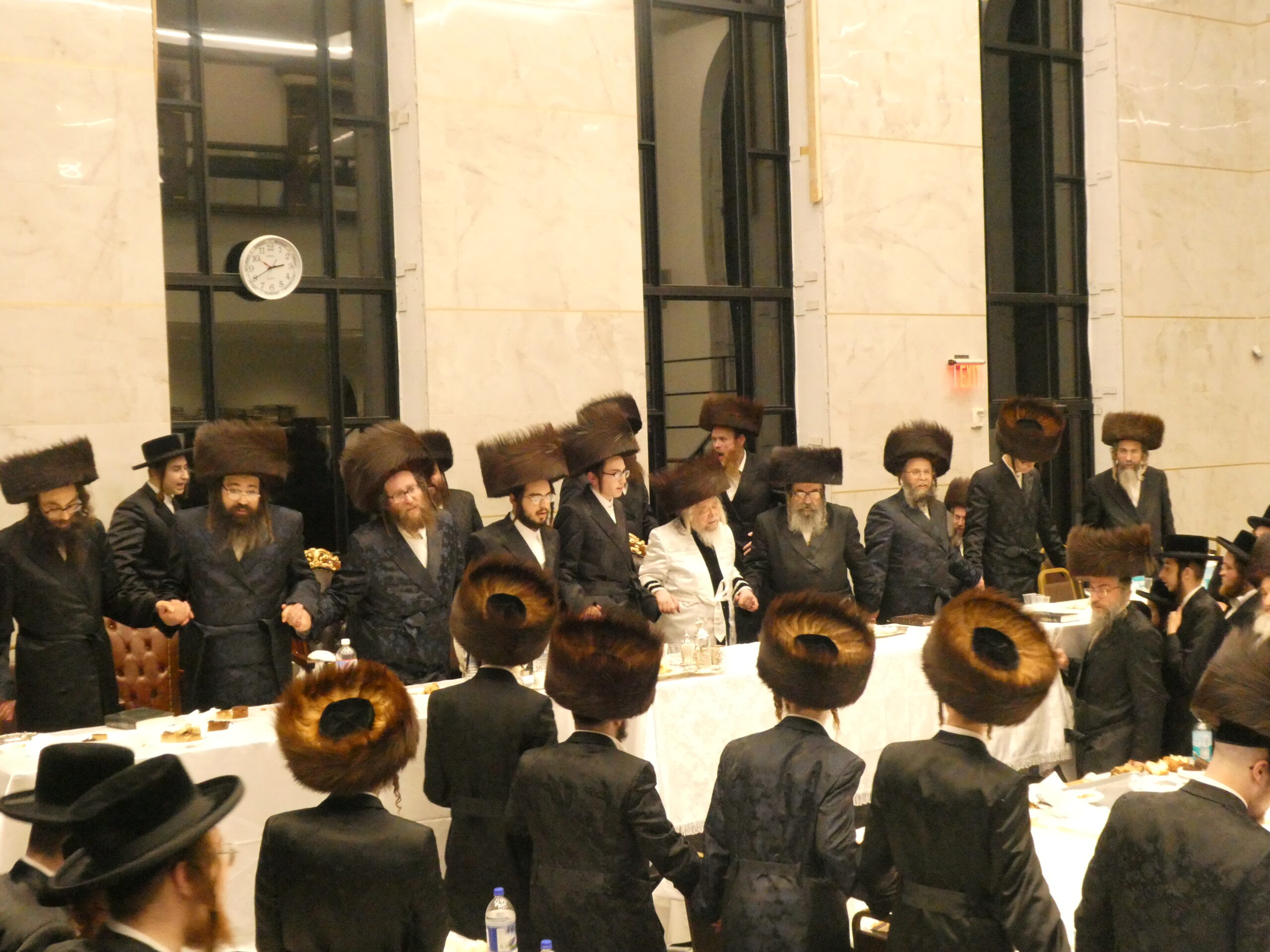 הונדערטער אידן האבן געשטראמט במשך שבת קודש און בפרט ליל שב"ק לאנגע שעה'ן צום עריכת השולחן ליל שב"ק וואס דער רבי שליט"א האט געפראוועט מיט א קאכעדיגע ברען און התלהבות. דער טיש האט זיך פארצויגן אריבער פינף שעה מיט זמירות ותשבחות ריקודין און דברי תורה, מיטן בענטשן איז מכובד געווארן די אבי הכלה הגה"צ אב"ד מאגלניצא שליט"א, אין ארום 4:30 פארטאגס האט מען באגלייט דעם רבין שליט"א בשירה וזמרה צום בית האכסני'.