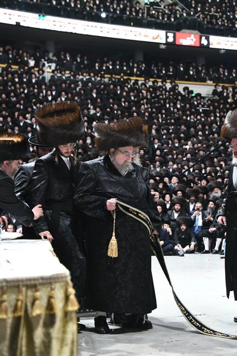 ארום צען דרייסיג אויפדערנאכט איז דער בעלזא רב ארויסגעפארן צום ארענא סטעדיום מפאר צו זיין על ראש שמחתו, רבבות אלפי ישראל א ריזן ציבור פון העכער צען טויזענט אידן חסידי בעלזא האבן מקדם געווען פני הקודש מיטן ניגון קול רינה, ווען געפילן פון שמחה והתרגשות שטורעמען ביי יעדן אין הארץ. דער רב האט אריין צופיס און צוגעגאנגען ביז די צענטער פון אויבן אן, און מעודד געווען די ריקודין א לענגערע צייט. ווי אויך האט דער מחותן הרה"צ ר' אהרן מרדכי שטארק מעודד געווען די ריקודין דורכאויס די גאנצע שמחה, און געהויבן דעם ציבור אין די לופטן בשמחה והתרגשות.
