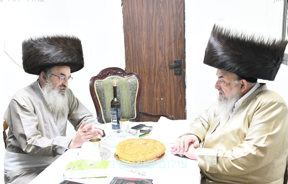 כ"ק האדמו"ר מלעלוב שליט"א וואס האט געוויילט אויף שבת אינעם עיר התורה והחסידות בני ברק האט היינט מוצאי שבת באזוכט ביי אחיו הגדול כ"ק האדמו"ר מלעלוב שליט"א פון בני ברק לרגל די בר מצוה פון אן אייניקל, עס איז פארפירט געווארן א שיינעם שמועס אין די רבי'ס האבן געטרינקען לחיים.