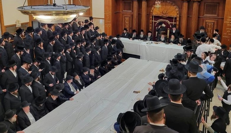 די רבי שליט"א איז אריינגעקומען אנגעטוהן מיטן קאלפיק לכבוד ראש חודש, אין זיך געוואשן צום סעודה, ביים טיש האבן זיך משתתף געוועהן דעם רבינס איידימער כ"ק האדמו"ר מלויצק שליט"א וואס איז אויך צוגאסט די טעג אין ניו יארק אין כ"ק האדמו"ר מאונגוואר שליט"א.