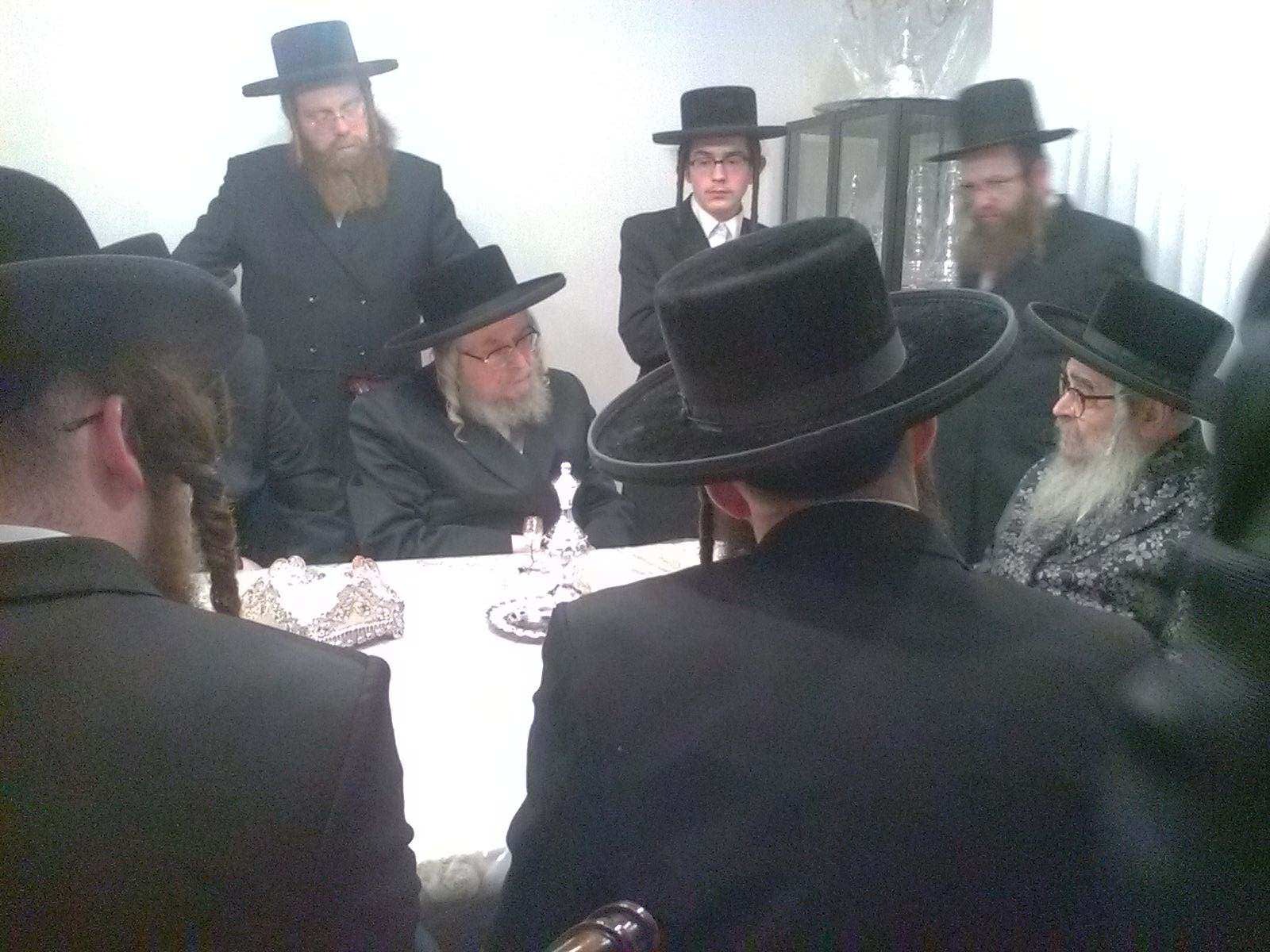 קול בחצרות – דעם דינסטיג זייענדיג אין וויליאמסבורג איז כ"ק האדמו"ר מסאטמאר שליט"א אנגעקומען אויף א באזוך בבית מחותנו הגה"צ רבי ליפא טייטלבוים שליט"א אבד"ק בית אהרן לרגל נישואי נכדתו הכלה בת בנו הגה"צ ר' הערש אלימלך טייטלבוים שליט"א אב"ד תפילה למשה ב"פ, ווי עס האט זיך פארמירט א לענגערע שמועס בקורות משפחת הצדיקים עצי התמרים זי"ע, דער רבי האט געטרינקן לחיים און ווארעם אנגעוואונטשן פארן מחותן און די גאנצע משפחה.