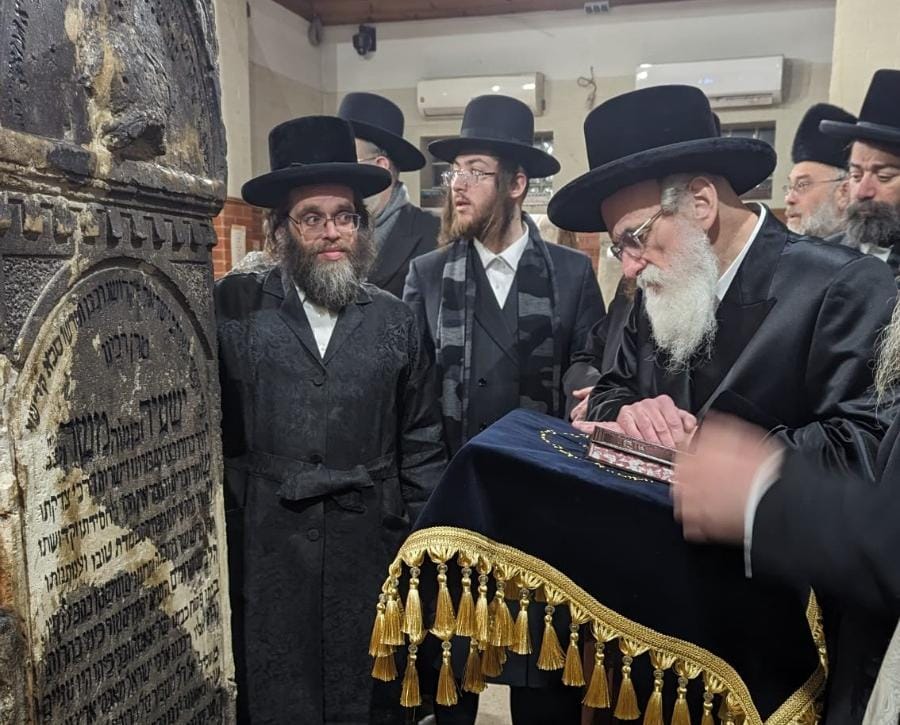 קול בחצרות – כ"ק האד' מוויז'ניץ שליט"א וועלכע האלט זיך די טעג אויף אויף א נסיעה צו די מקומות הקדושים אין קברי אבות אין איראפע איז נעכטן נאכמיטאג אנגעקומען צום שטאט צאנז ווי דער רבי האט צוערשט געדאווענט מנחה מיטן מנין מצומצם אינעם היסטארישן שול אין צאנז אין דאן אפגעראכטן א מסיבת לחיים ווי דער רבי האט ארומגערעט בגודל קדושת המקום ווי דער הייליגע צאנזער רב פלעג דא אויף דעם ארט אינעם שטאטישן שול אפרעכטן זיין עבודת הקודש אין זאגן די דרשות אין פארשידענע זמנים אין יאהר, דערנאך איז די רבי ארויף צום ציון הק' פונעם זיידן דער הייליגער דברי חיים זי"ע ובניו הקדושים, ווי דער רבי האט זיך פארשפארט ביחידות אינעם אהל הק' א לענגערע וויילע.