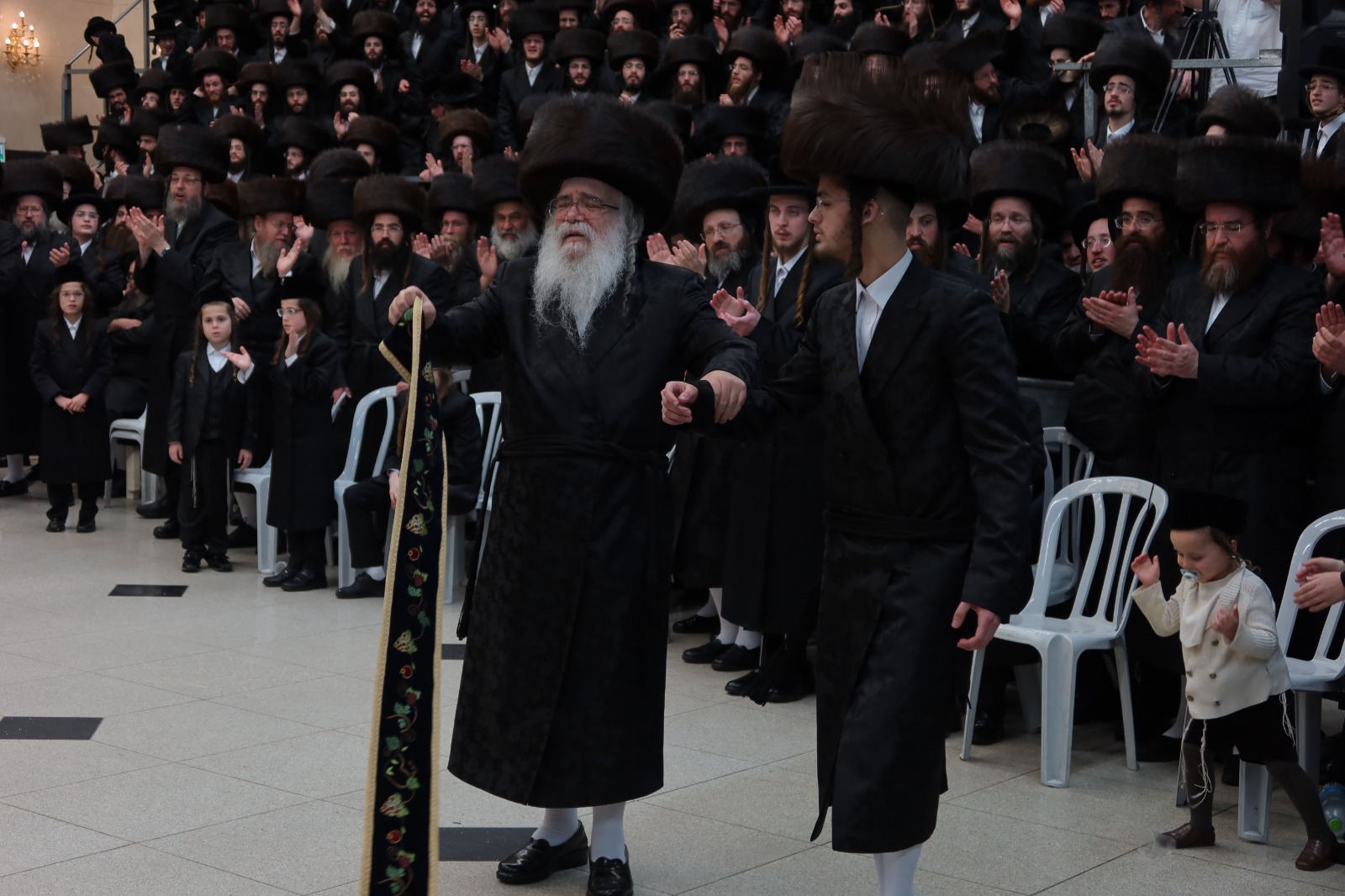 מיט גרויס דערהויבנקייט האָבן זיך הונדערטער חסידים מיטגעפרייט ביי די שמחת החתונה בחצרות הקודש דאראג – ספינקא – בערגסאז וואָס איז פייערליך אָפּגעראָכטן געווארן נעכטן מאנטיג אין בית מדרש הגדול דאראג אין בני ברק