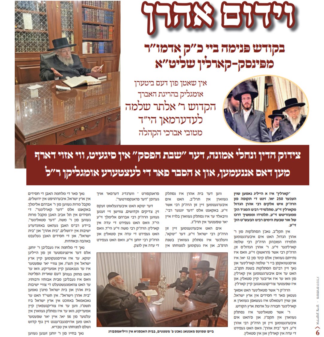 באריכט וידום אהרן: ארטיקל אין 'אידישע צייט' בקודש פנימה ביי האד' מפינסק קרלין געשריבן דורך admin123 פברואר 20, 2023 פברואר 20, 2023 ינואר 15, 2026 בוקמארק 2 מאנטאג תרומה כ"ט שבט ה'תשפ"ג פינסק קרלין בוקמארק צדיק בא לעיר: האד' מפינסק קארלין באזוכט אין שטאט קרית... ינואר 6, 2026 בוקמארק ביקור נימוסין • האד' מפינסק קארלין באזוכט ביי האד' מאמשינאוו... ינואר 4, 2026 ווידיאו • האד' מפינסק קארלין געזעגענט זיך פון הגה"צ רי"מ... דצמבר 28, 2025 בוקמארק נס גדול היה שם: חנוכה בחצר הקודש פינסק קארלין דצמבר 23, 2025 בוקמארק האד' מפינסק קארלין רעכט אפ הילולא קדישא פון הרה" ק... דצמבר 16, 2025 בוקמארק האד' מפינסק קארלין רעכט אפ הילולא קדישא פון הרה" ק... דצמבר 16, 2025 בוקמארק שידוך שליסן אין הויפן פון פינסק קארלין – סטראפקוב –... נובמבר 30, 2025 בוקמארק וְגִילוּ צַדִּיקִים: געהויבענע חתונה בחצר הקודש פינסק קארלין אין ירושלים נובמבר 25, 2025 בוקמארק אבד חסיד מן הארץ: נפטר געווארן המשפיע הגאון החסיד רבי... אוקטובר 16, 2025 בוקמארק פרייליכע שמחת פדיון הבן פון אור אייניקל ביי האדמור"ים מסאסוב... ספטמבר 30, 2025 שרייבט א קאמענט ביטול