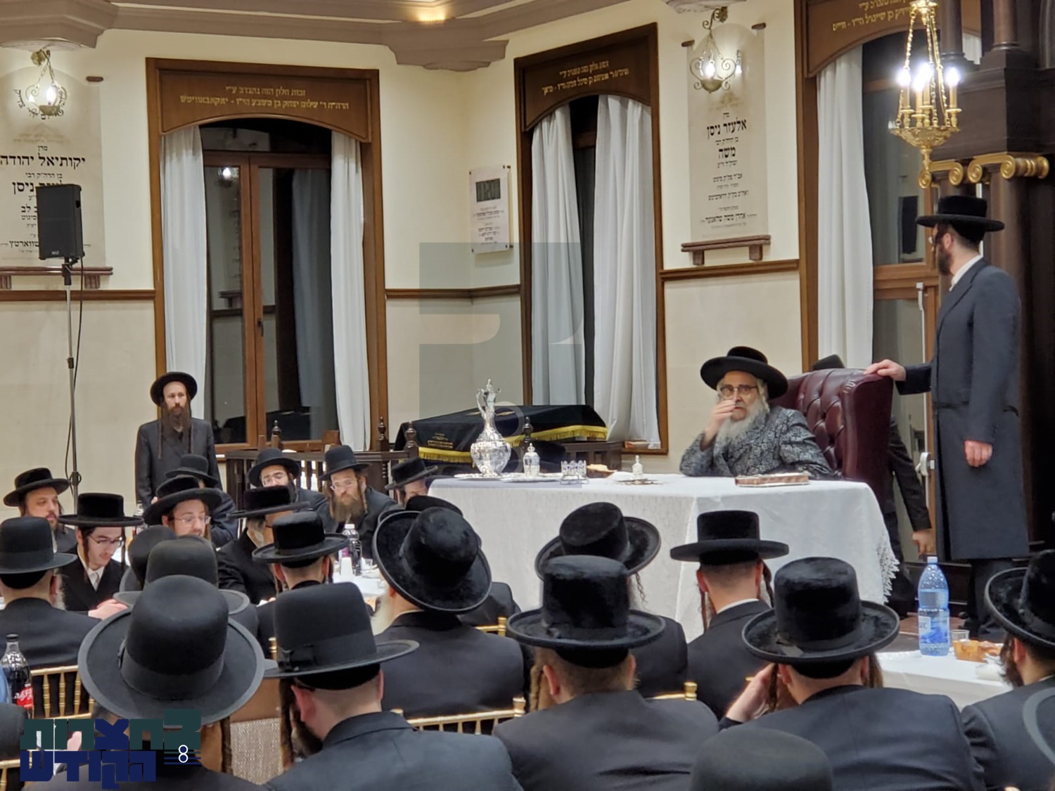 דער רבי האט געטרינקן לחיים און ווארעם אנגעוואנטשן פאר די פרישע מורי הוראה 'שלא יצא מכשול מתחת ידים', און פאר די חברי הנהלת הקהילה, און ספעציעל פאר הנגיד ר' אברהם יושע הכהן גלאנץ עסקן נמרץ למען הקהילה אין ירושלים