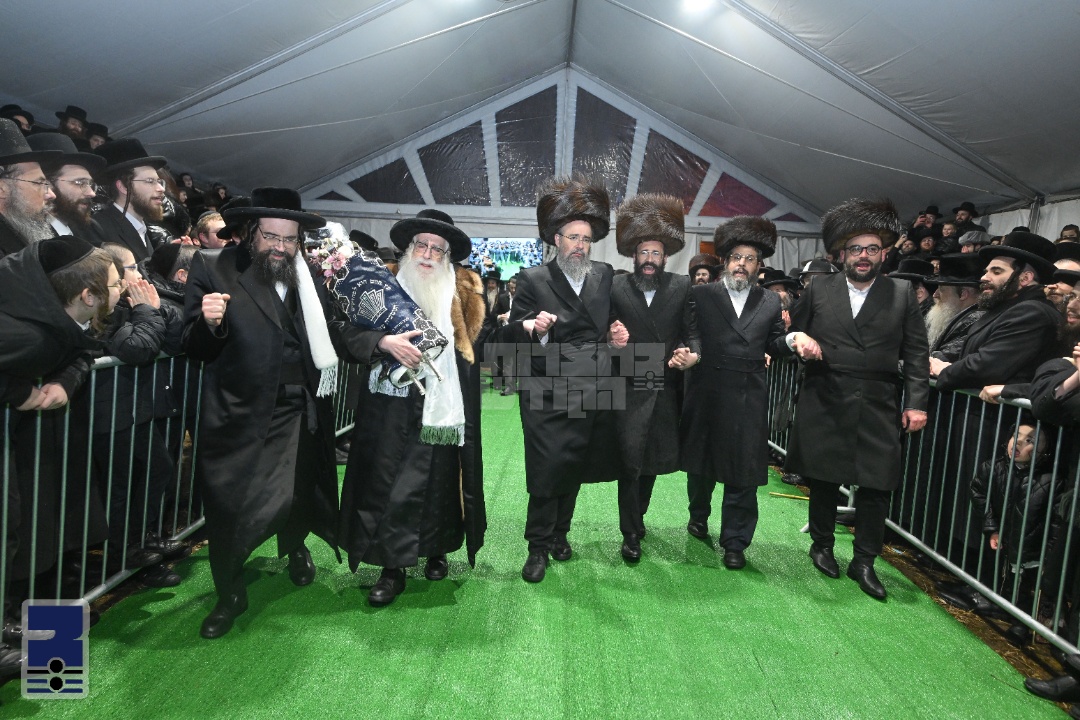 שפעטער בשעה 6:00 נאכמיטאג איז די ספר תורה ארויסגעפירט געווארן אונטער די הערליך באצירטע חופה, און אויפ'ן גאנצן וועג ביז צום ביהמ"ד, האט מען געטאנצן מיט א געוואלדיגן התלהבות לכבודה של תורה טראץ די שלאקס רעגן וואס האט זיך אראפגעלאזט אין לעיקוואד, ווען אויפ'ן גאנצן וועג זענען מכובד געווארן די רבנים הגאונים שליט"א און אנדערע פני וחשובי העדה צו טאנצן מיט די נייע ספר תורה.