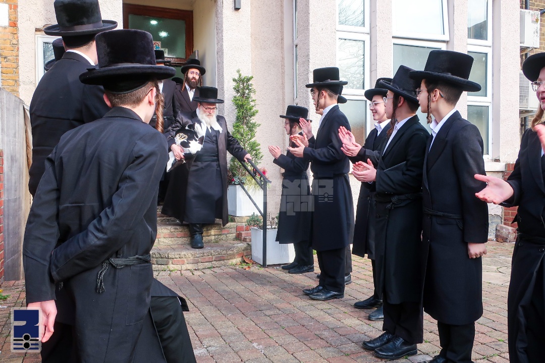 חסידי סקווירא אין לאנדאן האלטן מיט ימי אורה ביי באזוך פון הרה"צ ר' יצחק טווערסקי שליט"א בן האד' מסקווירא