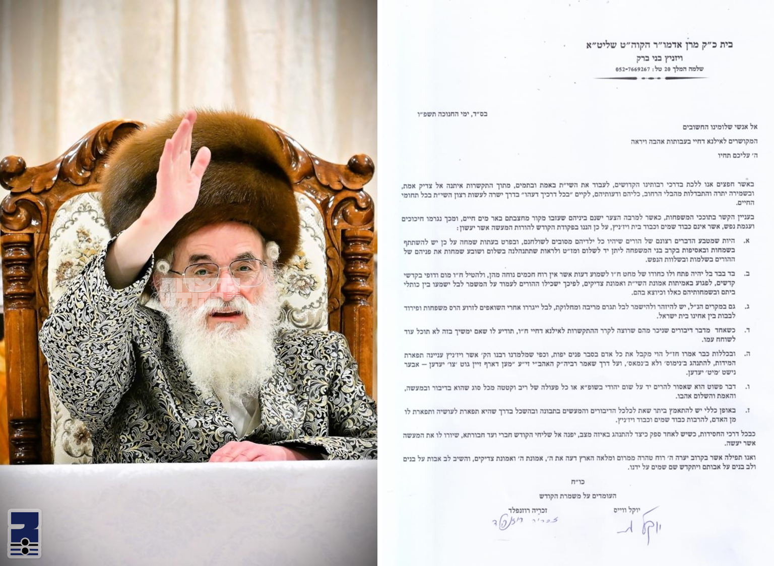 בפוקדת הקודש פונעם רבי'ן, וועט די דאזיגע בריוו ווערן פארגעליינט היינטיגן ליל שישי ביי אלע חבורות האברכים דחסידי וויזניץ בארץ ובגולה, למען ידעו ישמעו ויראו.