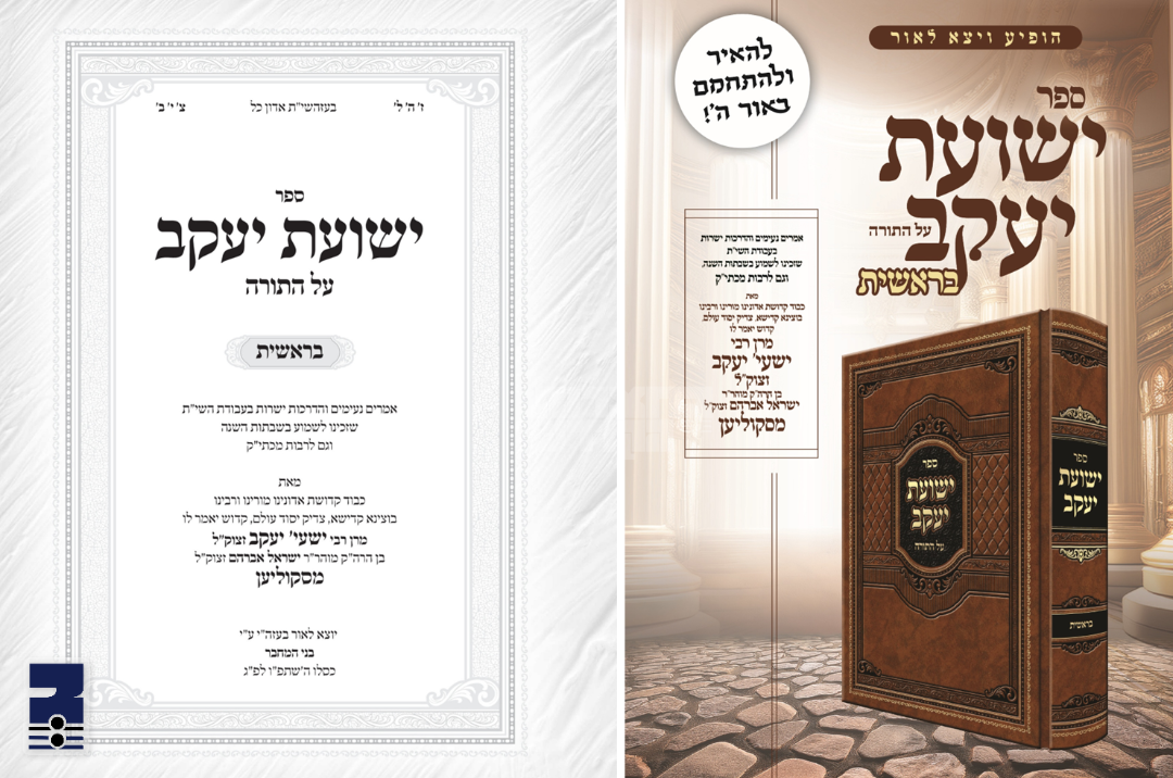 וזה יצא ראשונה — דער חיבור "ישועת יעקב" אויף סדר בראשית, וואס אנטהאלט מתיקות'דיגע חידושים אויף די פרשיות השבוע, און די אכטע הונדערט זייטן פון דעם חיבור זענען מלאים וגדושים מיט געהויבענע בחינות וואס זענען מעורר את לב האדם להתעלות בדרכי השי"ת.