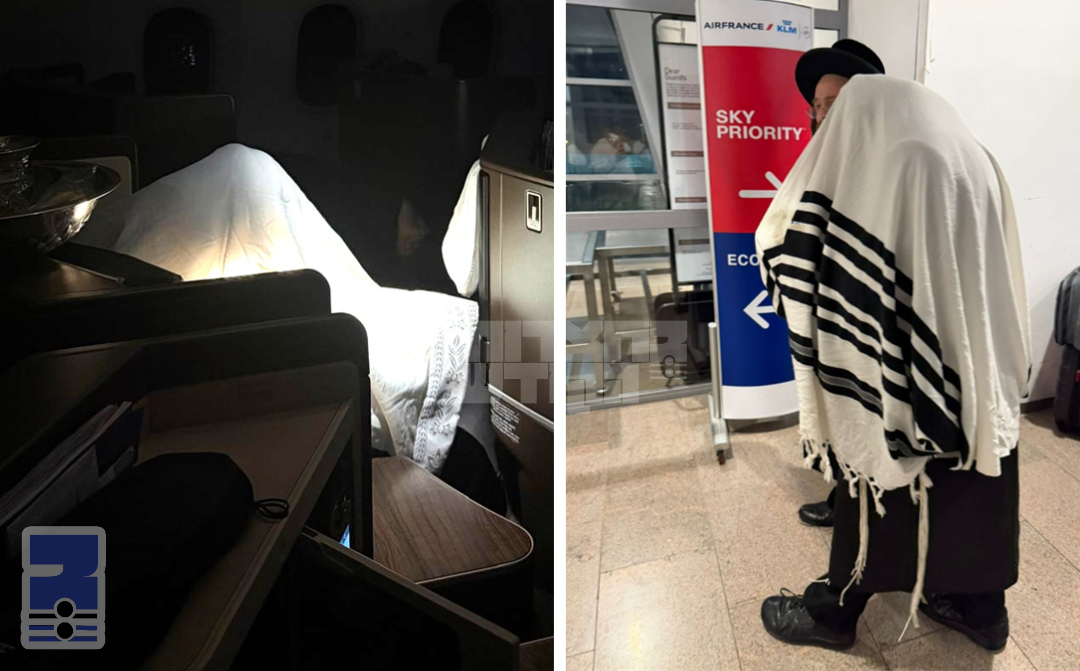ביי זיין פלאץ אויפן פליגער איז געווען אויסגעשפרייט א גרויסע ליילעך וואס זאל דינען אלס מחיצה צווישן דעם משפיע און די פלי מאנשאפט. דאס קומט נאכדעם וואס ביי די איצטיגע נסיעה איז נישט געווען מעגליך צו באשטעלן אלע ארומיגע זיץ פלעצער אויפן פליגער ווי ביי די פיערדיגע נסיעות, און דעריבער האט מען אויסגעשפרייט די מחיצה ביי זיין זיץ.