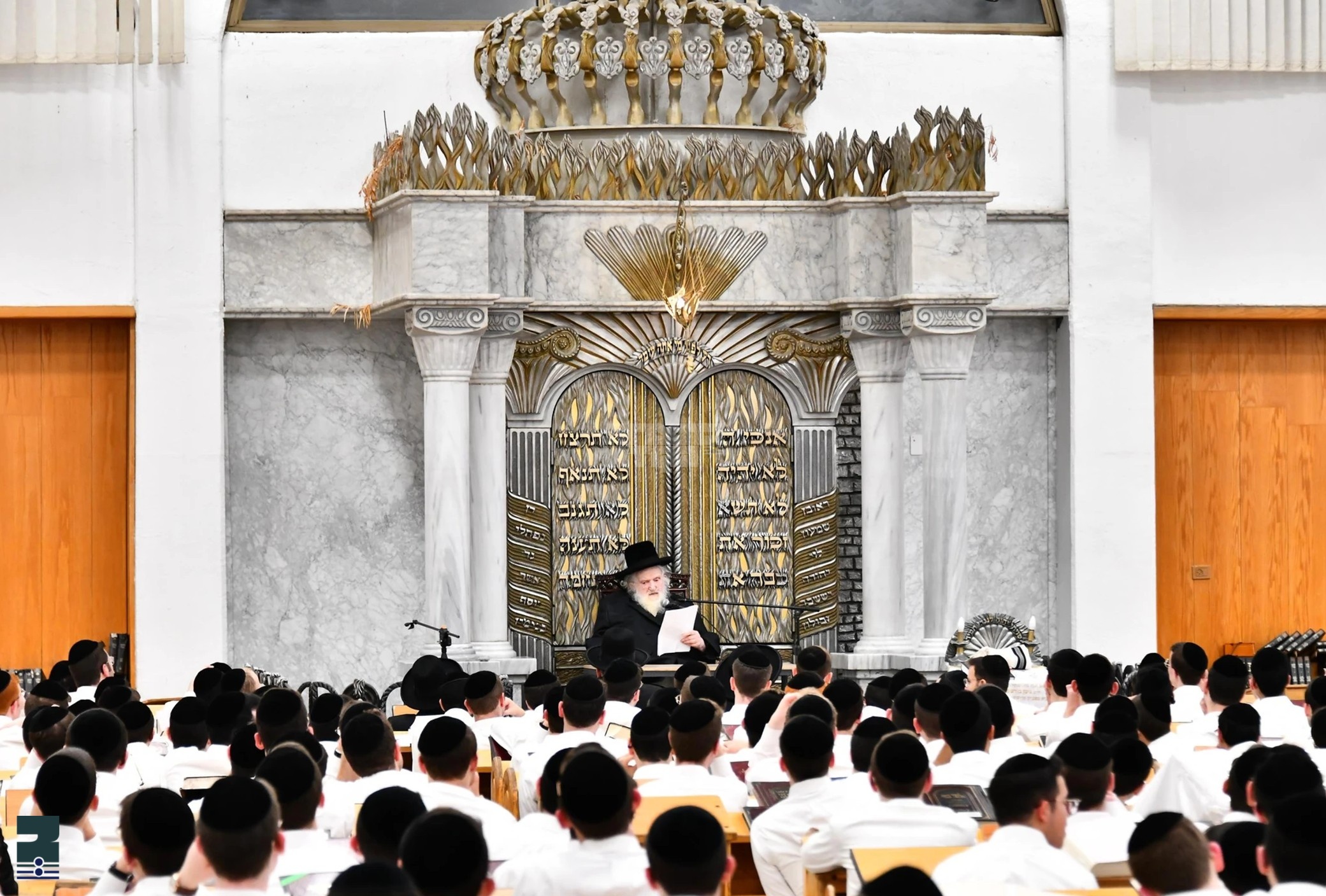 ווען דער פוסק הדור שליט"א איז אנגעקומען אין ישיבה איז ער באגריסט געווארן מיט גרויס כבוד דורך די ראשי הישיבה ובראשם הגאון רבי דוד כהן שליט"א וועלכע האט באדאנקט דעם גאון פארן אונטערנעמען די טירחה צו קומען מחזק זיין די ישיבה. דערנאך האט דער פוסק הדור שליט"א אנגעהויבן דעם שיחת קודש, ומן ההר אל העם גערעדט צו די בחורים אויף לשון הקודש אז מען זאל קענען פארשטיין די ווערטער. בתוך דבריו האט דער גאון מרחיב געווען איבער דעם מהות פון א בן ישיבה וואס איז כולל תורה יראת שמים מדות טובות און הנהגות טהורות.
