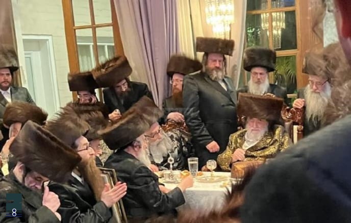הויפט בלאט בילדער באשיידענע מסיבת שבע ברכות אין אכסניא פון האד' מוויזניץ אין לאס אנדזשעלעס מיט השתתפות פון פינעף אדמור"י וויזניץ