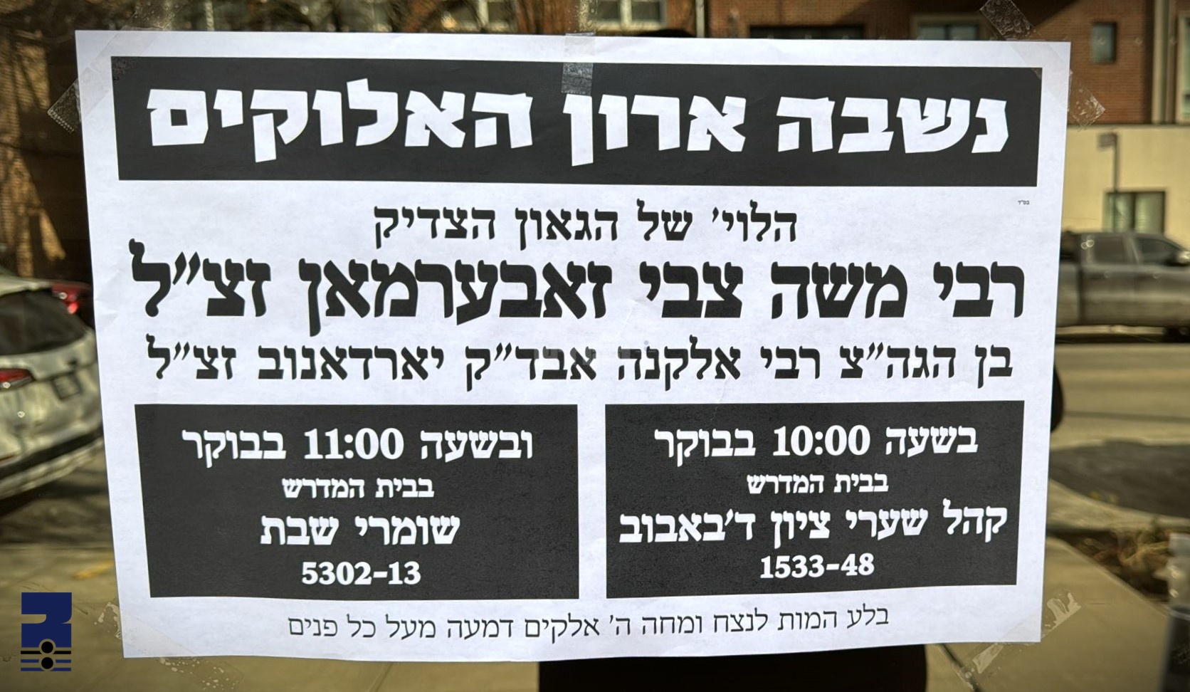 די לוי' וועט ארויסגיין היינט 10:00 אינדערפרי פון ביהמ"ד הגדול באבוב אין בארא פארק, טאקע דאס פלאץ וואו ער האט אזויפיל צענדליגער יארן זוכה געווען מרביץ תורה צו זיין און משפיע געווען פון זיין גאונות און צדקות. בהוראת הקודש פון כ"ק אדמו"ר מבאבוב שליט"א וועט מען אריינברענגען די מיטה אין אלטן ביהמ"ד וואו עס וועלן געהערט ווערן הספדים. אום 11:00 וועט פארקומען די לוי' ביים ביהמ"ד שומרי שבת, און פון דארט וועט מען באגלייטן די מיטה צום באבובער חלקה אין ניו דזשערזי וואו ער וועט קומען לקבורה.