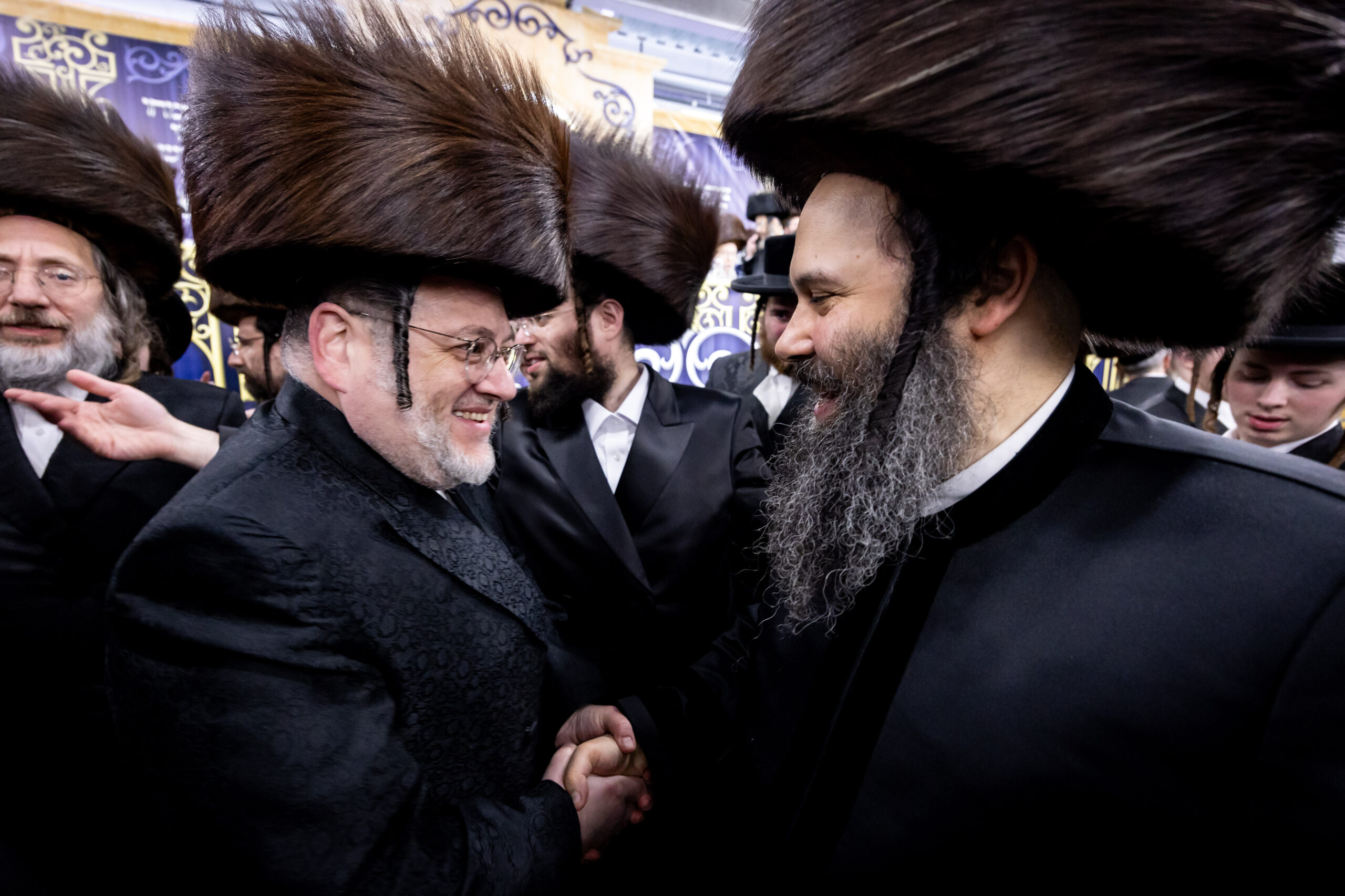 ווי אַן עלעקטראָנישער שטראָם איז דורכגעלאפן ווען די רבי שליט"א איז ערשינען אין זאַל, און די טויזנטער חסידים האבן זיך אויפגעהויבן אין פלאמעדיגע ריקודין "קול רנה וישועה באהלי צדיקים״, דאן האט זיך די רבי געוואַשן צו דער סעודה, און דערנאָך געוואונטשן "לחיים". אינצווישן זענען צוגעקומען צום אויבנאָן פרישע געסט רבנים און גדולי התורה, באַרימטע רבני׳שע פּערזענליכקייטן פון איבער ניו יאָרק און אומגעגנט וועלכע זענען געקומען אָפּגעבן זייערע וואַרימע מזל טוב ברכות צום גרויסן זיידן כ"ק אדמו"ר מסאַטמאַר שליט"א און צו די חשוב׳ע מחותנים. צווישן די משתתפים האבן זיך אנגעזעהן האדמורי"ם מבית חיים יהושע, וויזניץ ירושלים, וויזניץ לאנדאן, ראחמיסטריווקא אוקענוויין, וויען, סקאליע, סוליצא, סטרעטין, מאשלוי, בלאזוב, פאפא בארא פארק, עדעלין קערעסטיר, בראד, סערט וויזניץ לעיקוואד.