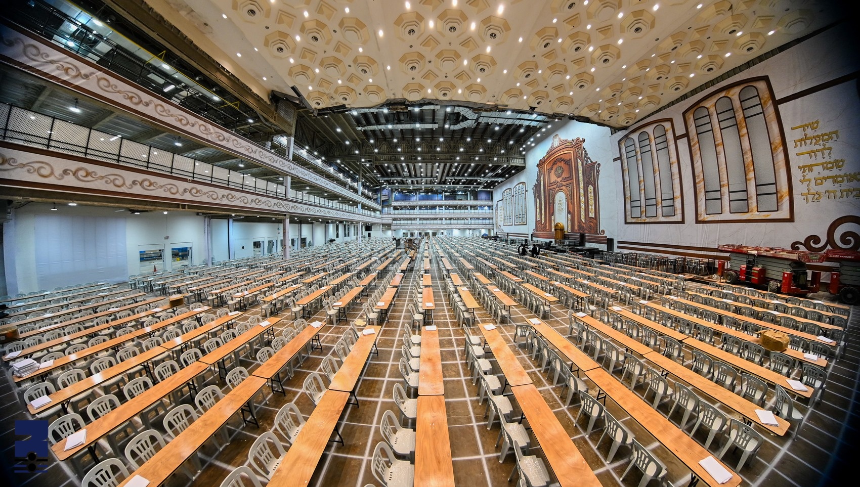 אין די לעצטע פָּאר וואכן האט דער רבי שליט"א אויסגעדרוקט רצון קדשו פאר די עסקני הבנין אז מען זאל זעהן צו טוהן וואס מעגליך אז מען זאל קענען דאווענען אינעם נייעם ריזיגן היכל הביהמ"ד שוין אויף דעם קומענדיגן א' סליחות, ווען עס קומען זיך צונויף שווערע טויזענטער אידן מיטצוהאלטן די ערשטע סליחות ביים רבי'ן און דער יעצטיגער היכל הביהמ"ד קען נישט אקאמאדירן אזא ריזיגן ציבור בליעה"ר, די געטרייע עסקנים וואס אין די לעצטע תקופה יומם ולילה לא ישבותו למען בנין הביהמ"ד האבן זיך פונדאסניי אריינגעלייגט ראשם ורובם צו שאפן די נויטיגע סכומים אדירים צו פארענדיגן די בוי ארבייט, און אין די זעלבע צייט אנגעגארטלט די צענדליגער ארבייטער צו ארבעטן רונדע דעם זייגער, כדי אז מען זאל קענען אהערשטעלן דעם נייעם היכל הגדול גרייט פאר'ן ציבור אויף א' סליחות, און מיט גרויס סייעתא דשמיא און זכות אבות האט מען ב"ה באוויזן לעשות רצון צדיק און צורישן דעם ביהמ"ד הגדול אז ס'זאל זיין גרייט אויפ'ן באנוץ פאר דעם מוצאי שב"ק א' דסליחות, און הגם דער בנין איז נאכנישט פולקאם פארטיג, האט מען אבער באוויזן אויסצורישן דעם גיגאנטישן היכל מיט אלע גאלעריען פאר אנשים נשים וטף, וואס אינאיינעם טוט דאס אקאמאדירן 10 טויזענט זיץ פלעצער.