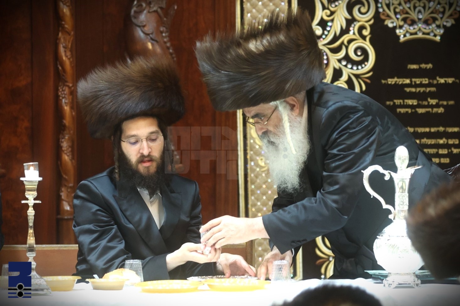 נאך די דברות קודש איז דער רבי אראפ אין צענטער פון זאל און זיך ארויסגעלאזט אין א פייערדיגע ריקוד מיט בנו חביבו, און דערנאך אויסגעברייטערט דעם רינג מיט'ן ארייננעמען אלע עסקנים, אפרעכטנדיג מיט זיי א געהויבענע ידידות'דיגע טאנץ וואס האט זיך פארצויגן ביז א שפעטע שעה.
