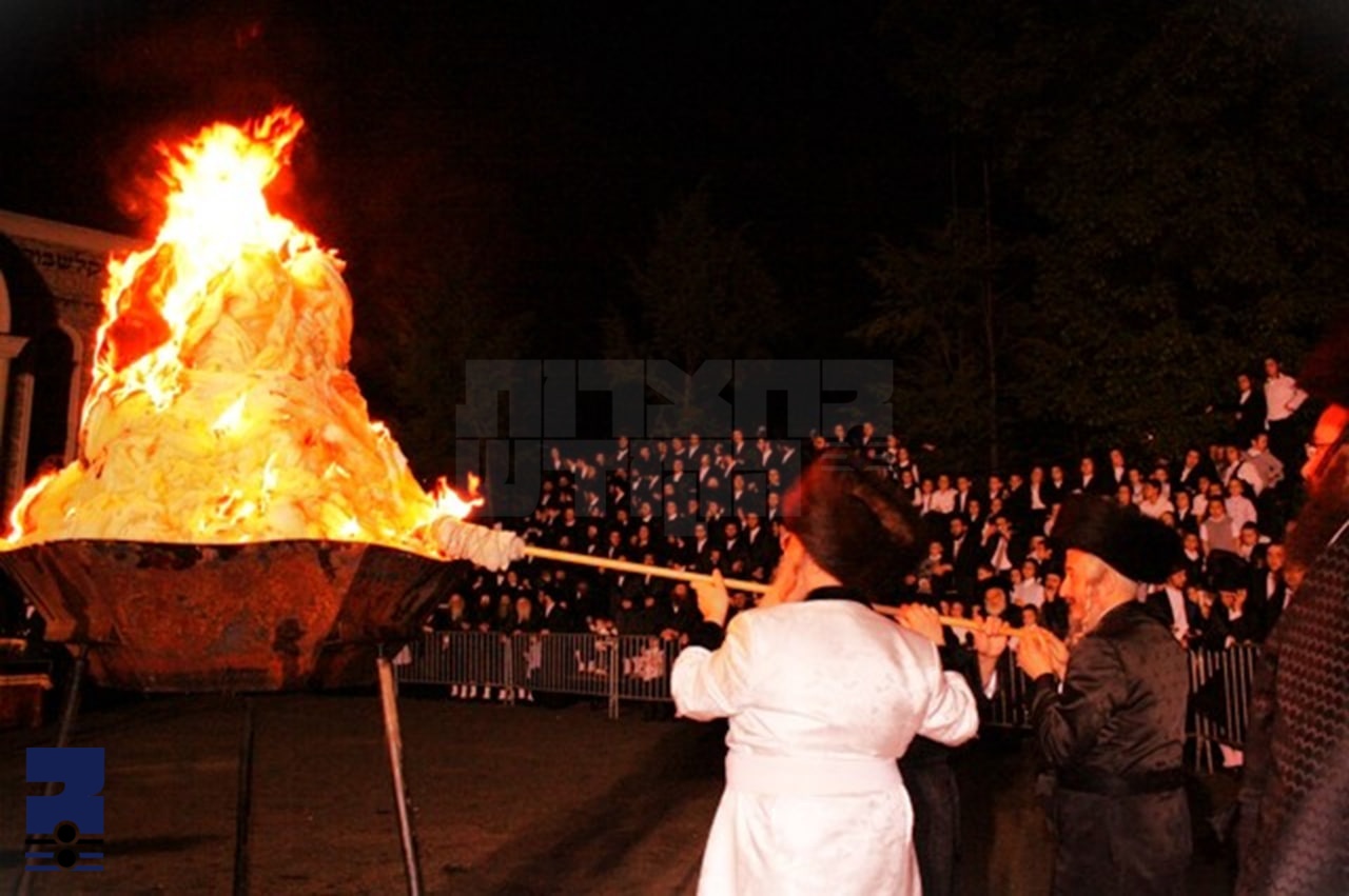 מיט רגשי קודש רישן זיך מאסן חסידים ואנשי מעשה מיטצולעבן די פייערליכע מעמד "הדלקה גדולה" בליל ל"ג בעומר דורך כ"ק אדמו"ר מניקלשבורג אין שטאט מאנסי.