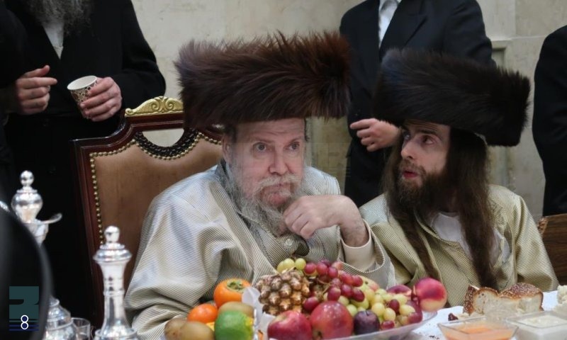 א דערהויבענע שבת של שמחה געפראוועט בחצר קדשו פון כ"ק אדמו"ר מלעלוב שליט"א אין בארא פארק לרגל שמחת הברית ביי א אייניקל פונעם רבין שליט"א בן הנולד ביי בנו בכורו הרה"צ רבי אהרן בידערמאן שליט"א פון ירושלים.