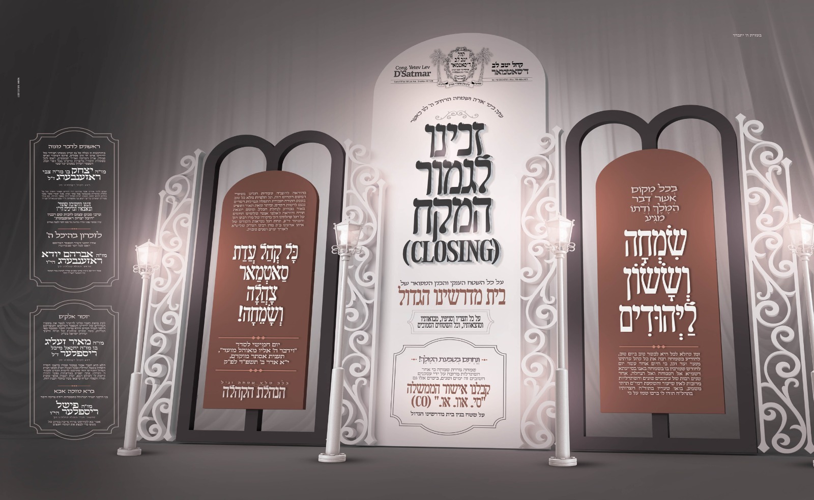 מיט שטורמיש פריידיגע געפילן האבן תלמידי וחסידי סאטמאר אויפגענימען די היסטארישע נייעס פון שטאט וויליאמסבורג, אז בס"ד נאך לאנגע יארן וואס די קהילה איז איינקוואטירט אין בנין ביהמ"ד הגדול אויף הופער סט. איז אין די טעג געלונגען גענצליך אפצוקויפן און קלאוזן אויפן שטח הביהמ"ד.